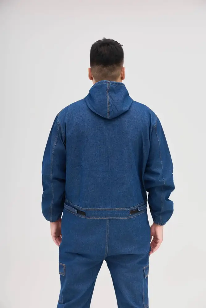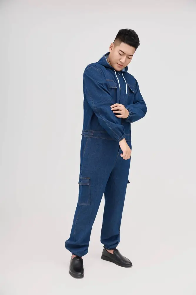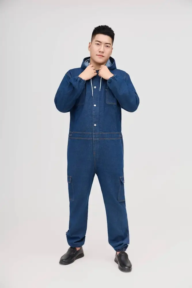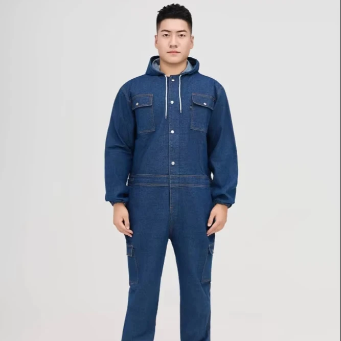Conjoined Overalls Suit Men Machine Repair Spring and Autumn Wear-resistant Welders Universal Protective Hood Breathable Denim