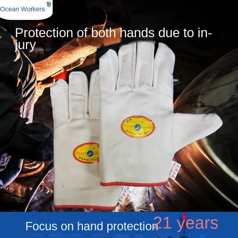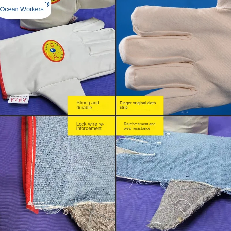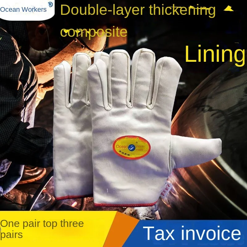 Double-Layer Composite Cotton Twill Safety Gloves Thickened Welder Labor Protection Gloves with Wear-Resistant Canvas Material