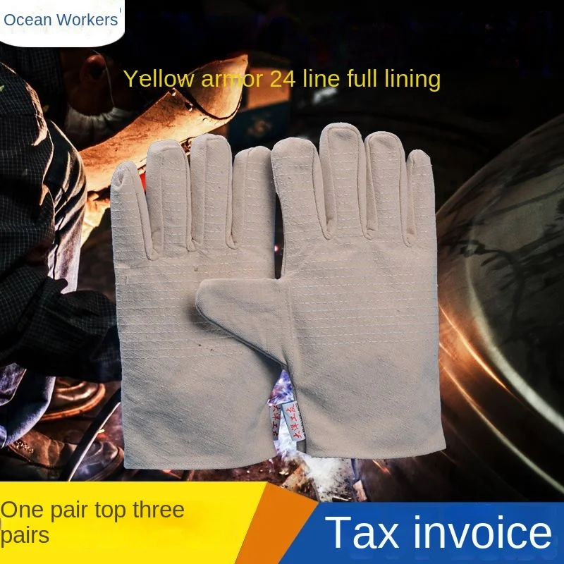 24-Line Yellow Fully Lined Canvas Safety Gloves Labor Protection Gloves Designed for Mechanics