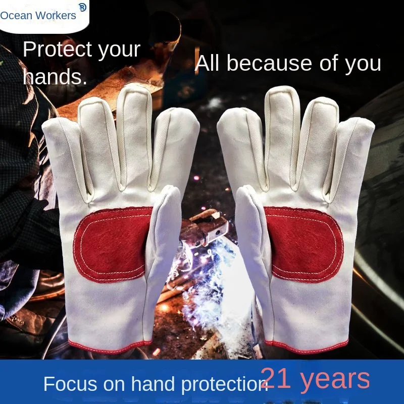 Wear-Resistant Safety Gloves Protective Composite Railway and Welding Canvas Gloves with Leather Accents
