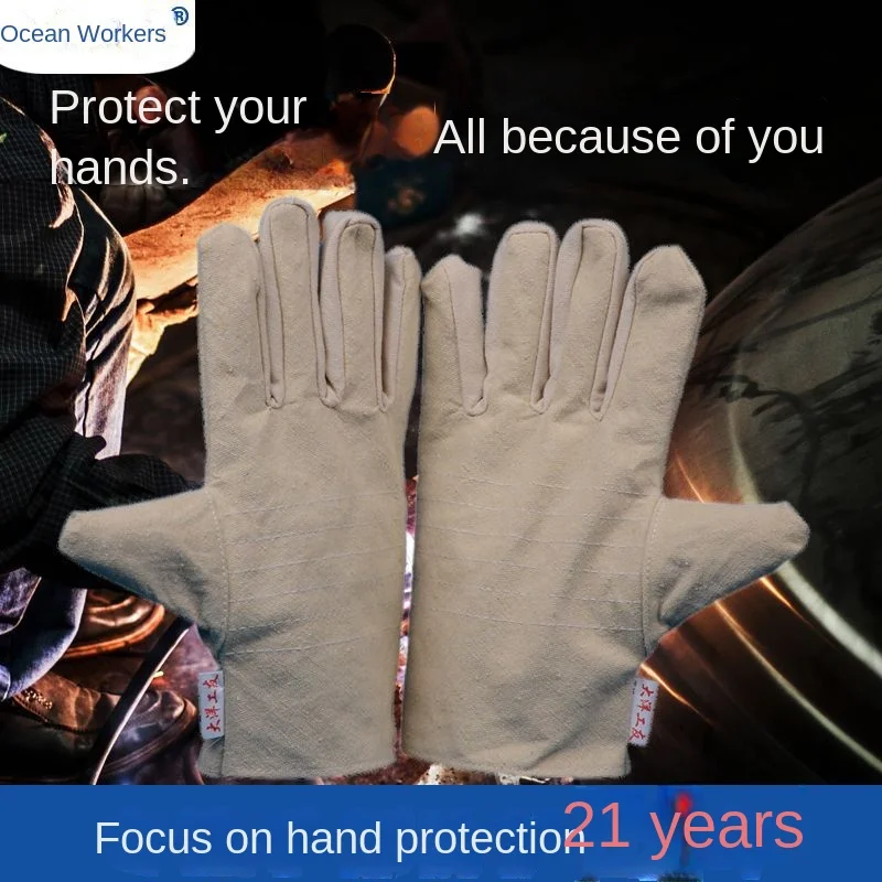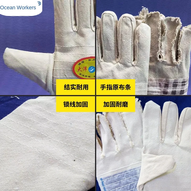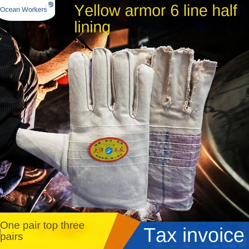 Wholesale Yellow Armour 6-Wire Gloves Half-Lined Thickened Wear-Resistant Canvas Gloves for Welding and Labor Protection
