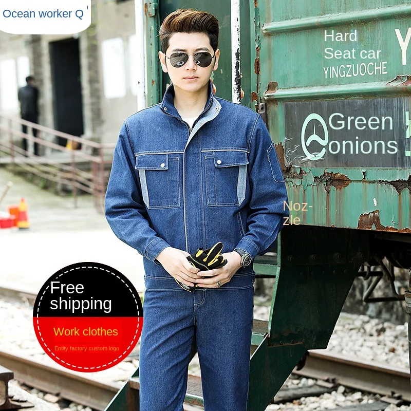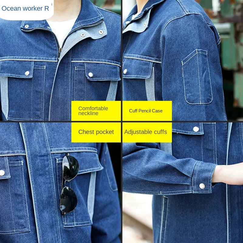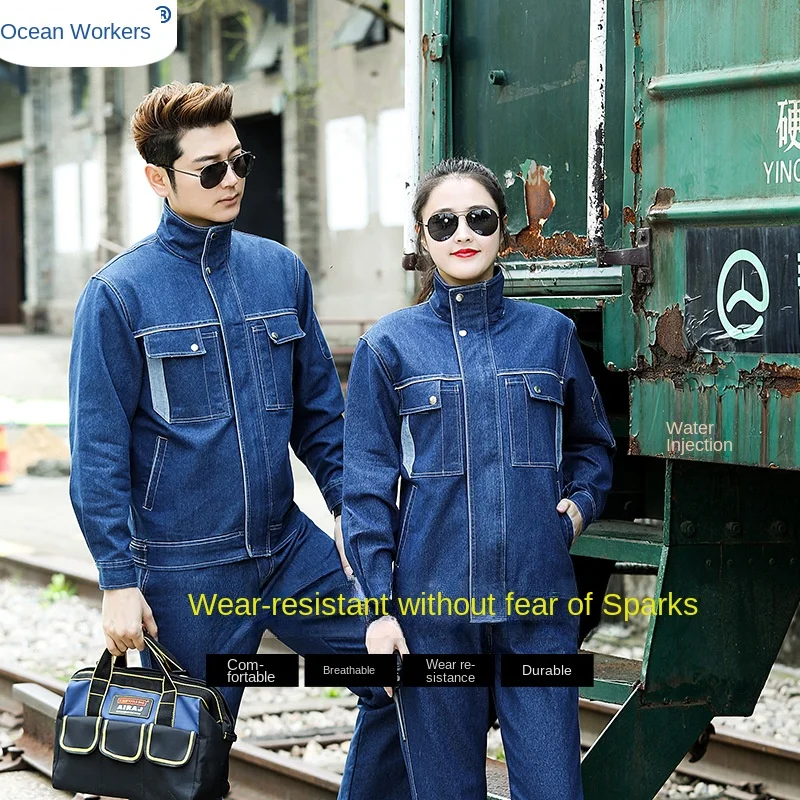 Long Sleeve Breathable Work Coverall Thin Denim Factory Labor Protection Clothing Wear-Resistant Tooling Uniform Style Work Suit