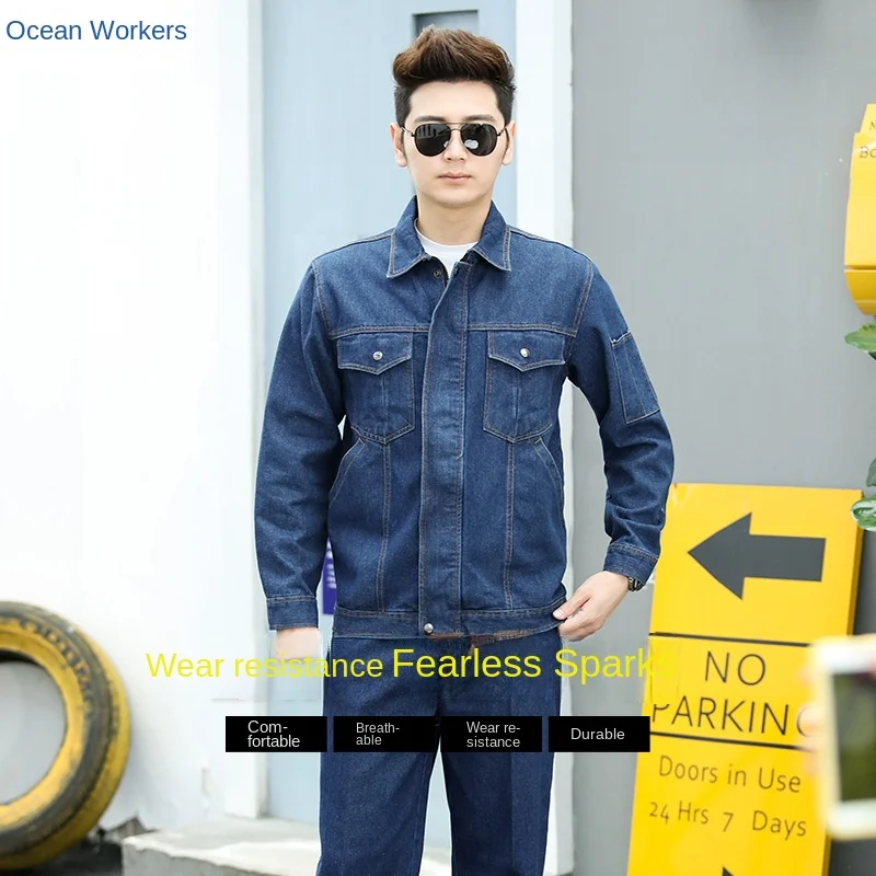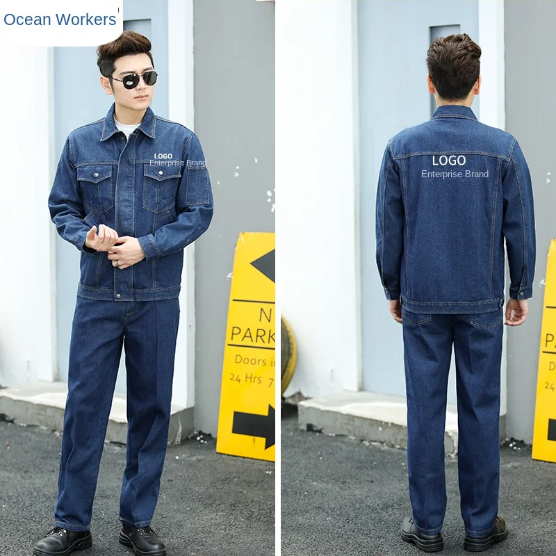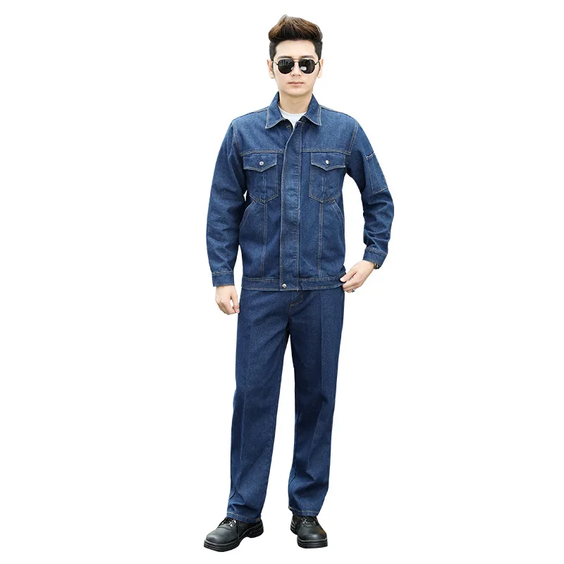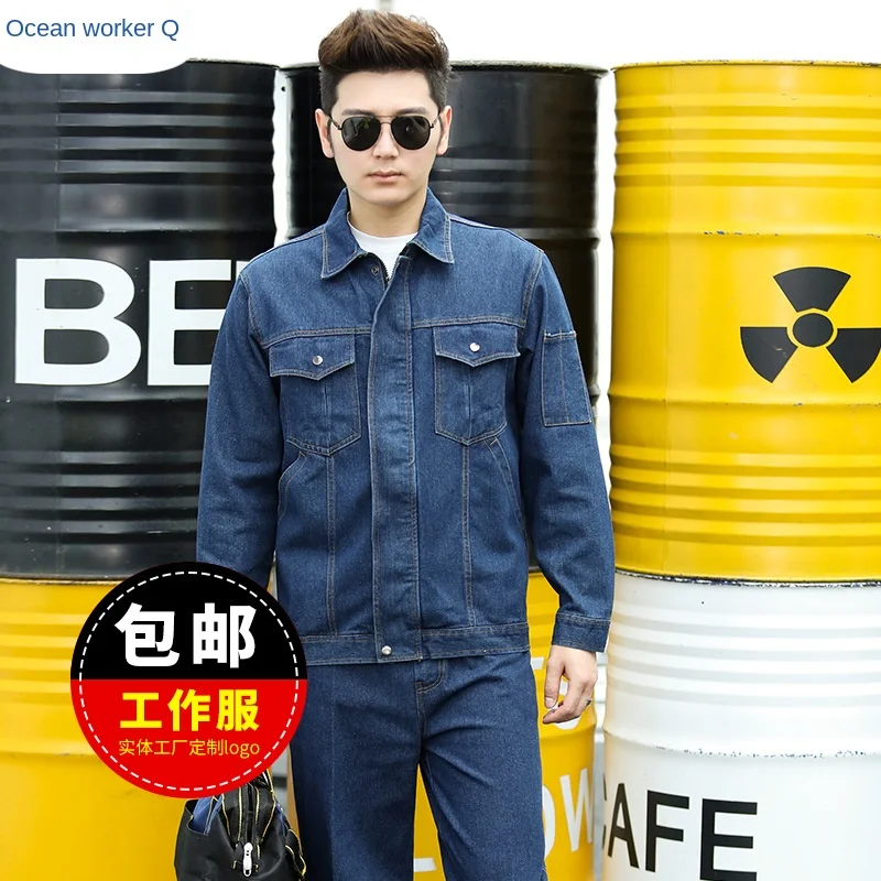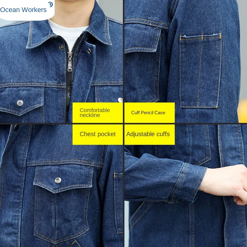 Long-Sleeved Cotton Denim Overalls Dustproof Workshop Labor Protection Workwear Suit