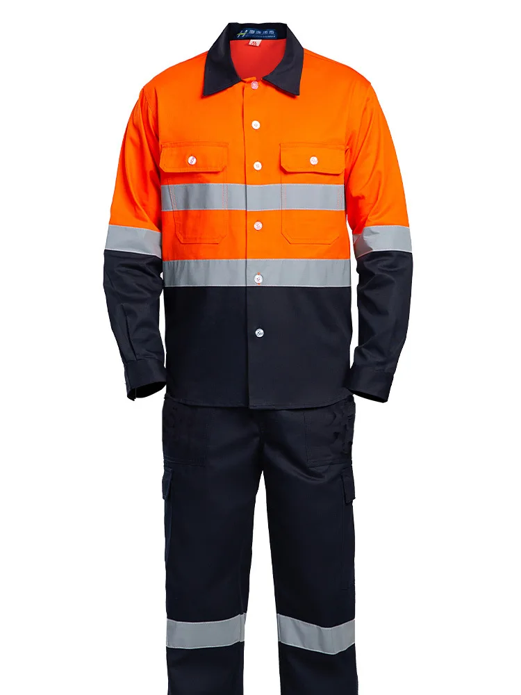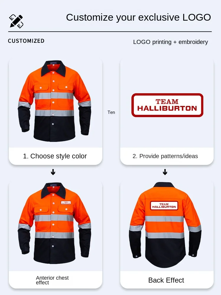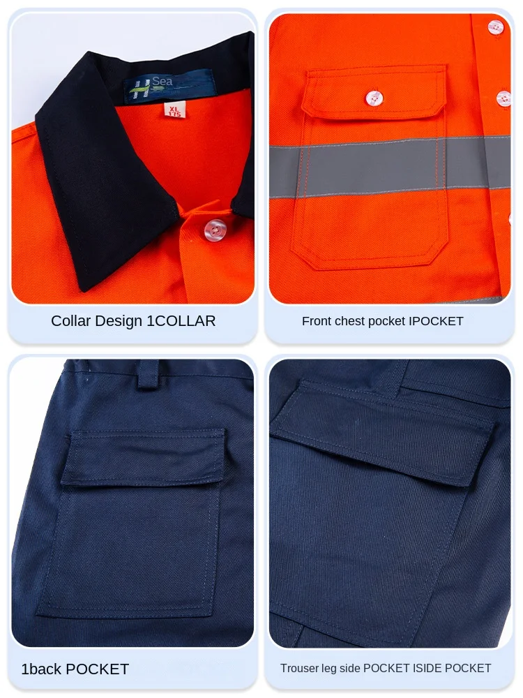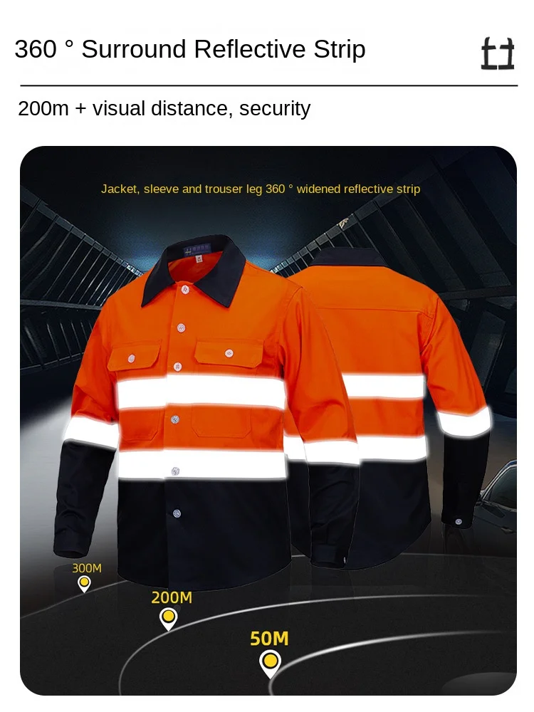 Foreign Trade Fluorescent Orange Cotton Reflective Moisture Wicking Overalls Shirt Lapel Breathable Mesh Custom Printed