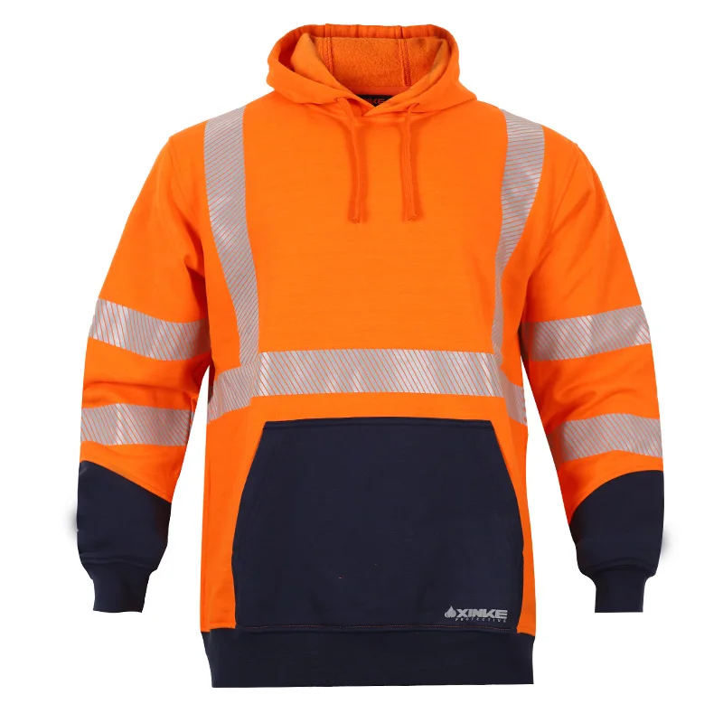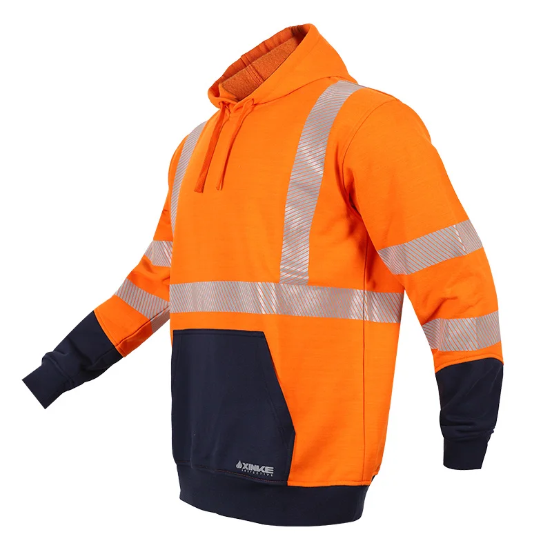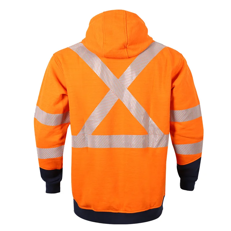 Customized Fr Safety Flame Retardant Orange Hi Vis Workwear Safety Hivis Workwear Wear Hoodie for Men