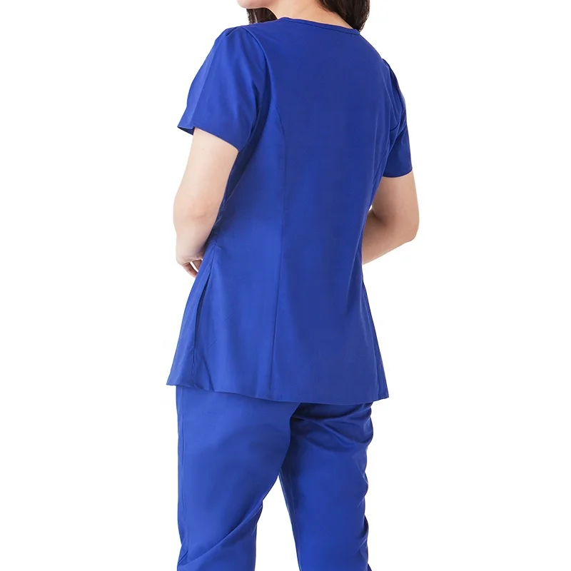 Women's Short Sleeve Zipper Woven Scrubs Tops Straight Pants Medical Nursing Uniform Elastic Stretchy Polyester/Rayon/Spandex
