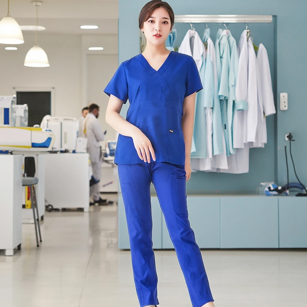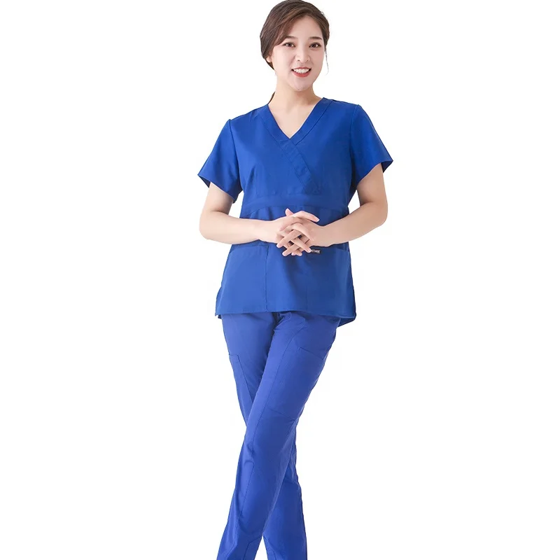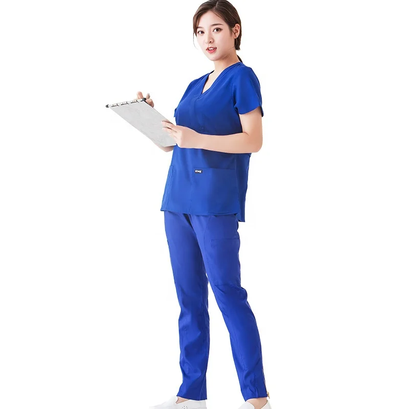 Wholesale Stylish Women's Stretch Sexy Scrubs Suit Colorful Hospital Uniforms Set Woven Fabric Polyester/Rayon/Spandex