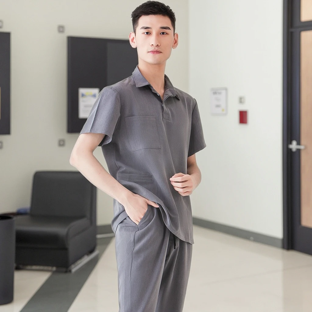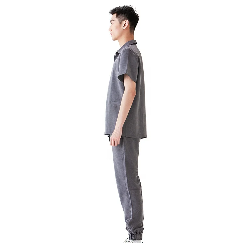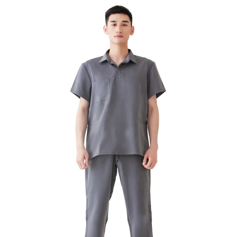 Wholesale Men's Nurse Medical Scrub Suit Set Short Sleeve Top Jogger Pants Breathable Woven Fabric Hospital Use
