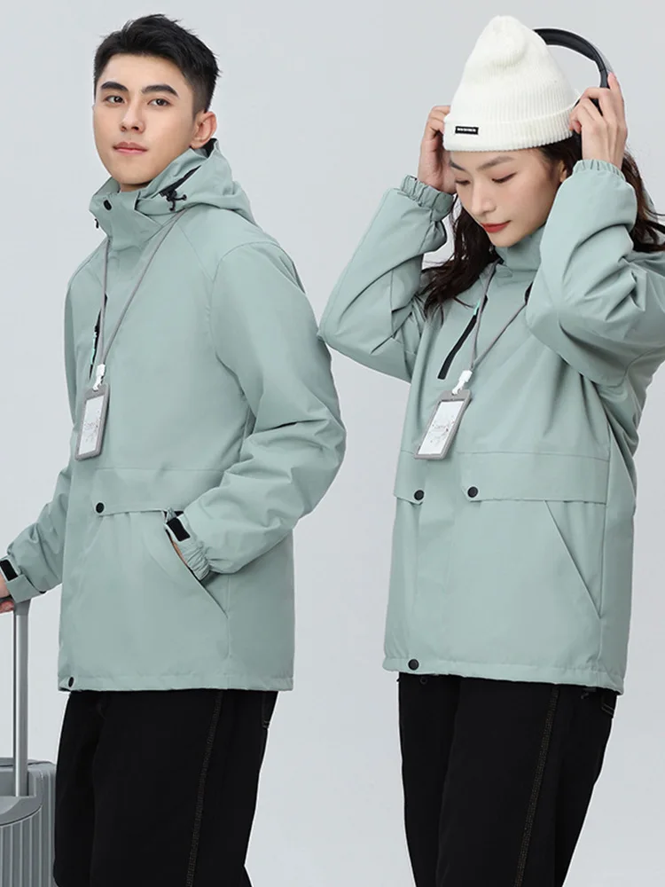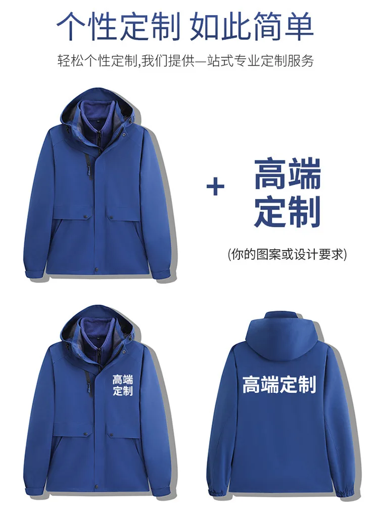Autumn Winter Three-in-One Removable Discharge Printed Custom logo Windproof Waterproof Outdoor Thickened Workwear Two-Piece Set
