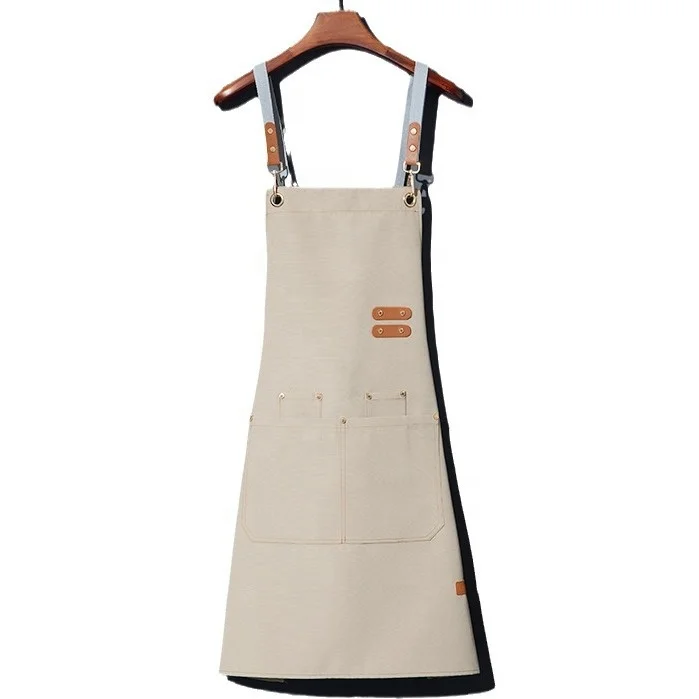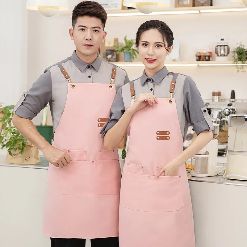 Customized Logo Korean Style Canvas Apron Internet Celebrity Waterproof Work Clothes for Restaurant & Bar Catering Uniforms