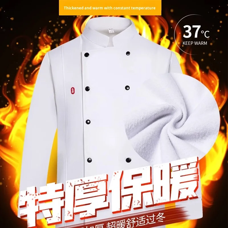 Autumn Winter Thickened Fleece Kitchen Chef Workwear Long Sleeve Men Women Catering Uniform for Restaurant Bar Cooking Top
