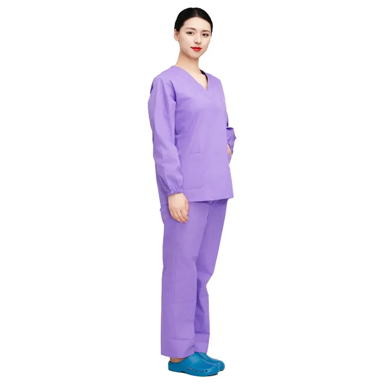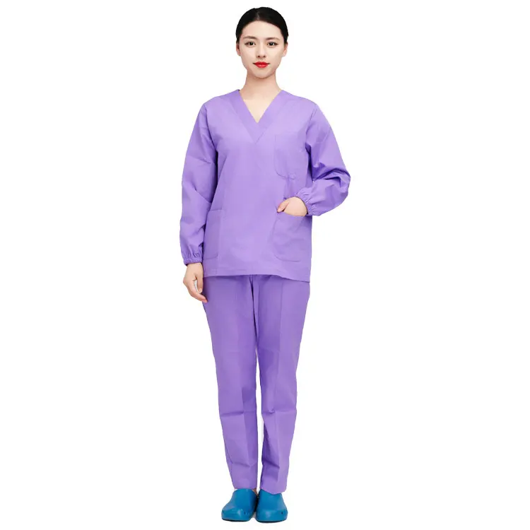 Wholesale Custom Long Sleeve V-Neck Medical Scrub Sets Hospital Uniforms Workwear Doctor Nurse Scrub Set