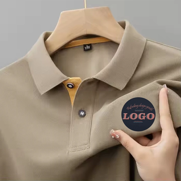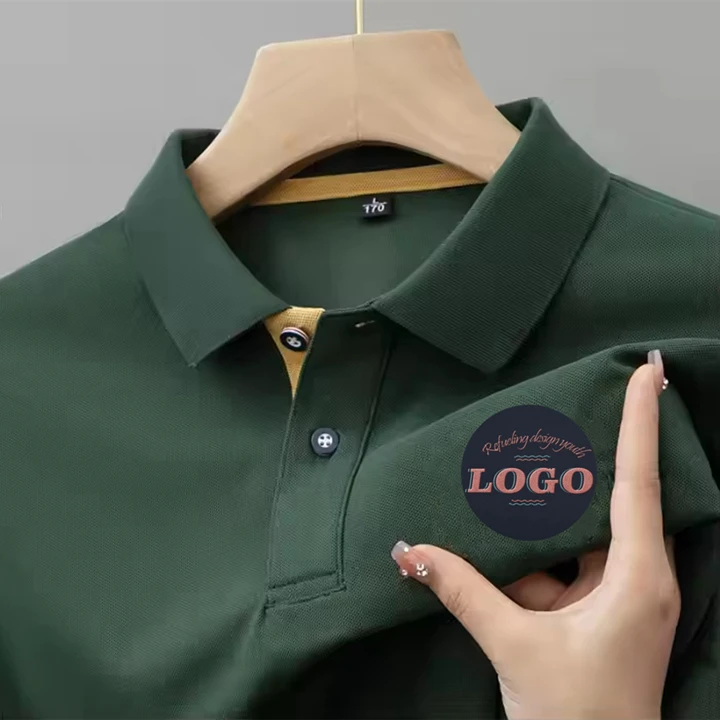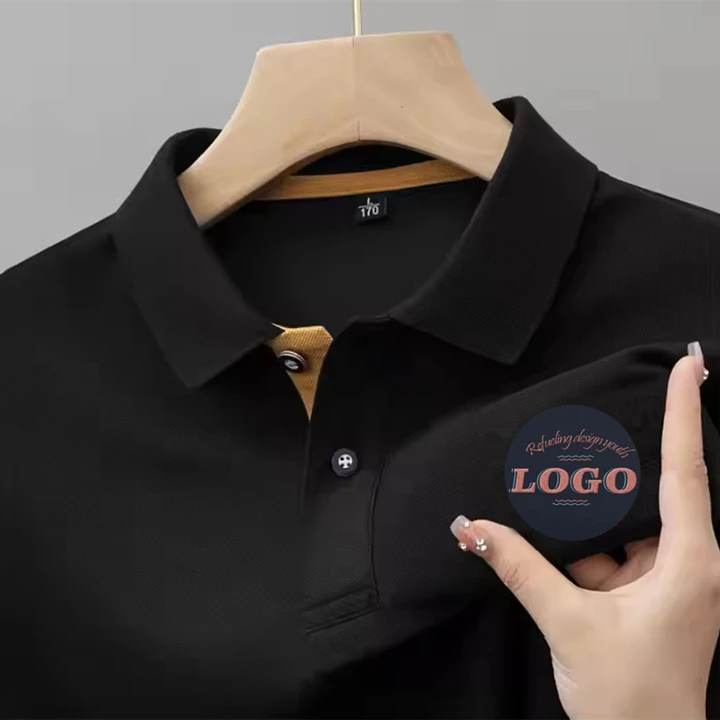 Hi Quality Summer Men's Short Sleeve Leisure Business Work Polo Shirt Vintage Print Embroidery Solid Color Woven Fabric T-Shirt
