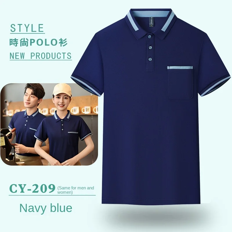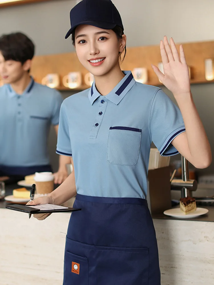 Oxford Wait Staff Overalls T-Shirt Polyester/Cotton Summer Restaurant Barbecue Milk Tea Shop Lapel Short Sleeve Digital Print