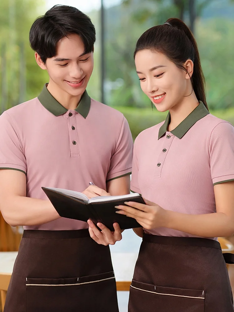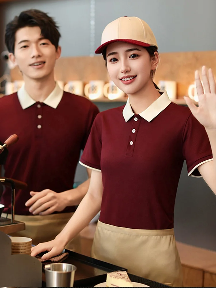 Customized Short-Sleeved Summer T-Shirt for Men Women Fast Food Coffee Catering Milk Tea Shop Work Restaurant Bar Accessory