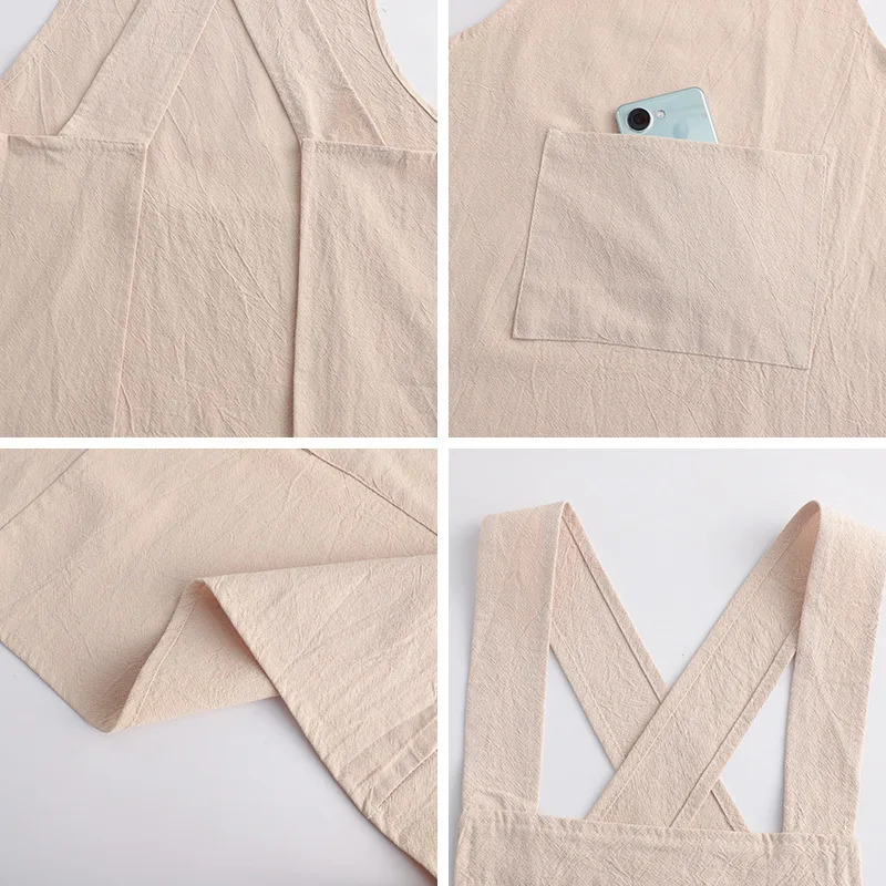 Japanese-Style Cotton Wrinkled Fabric Breathable Home Kitchen Apron Custom Logo Restaurant Bar Uniforms Bar Restaurant Uniforms