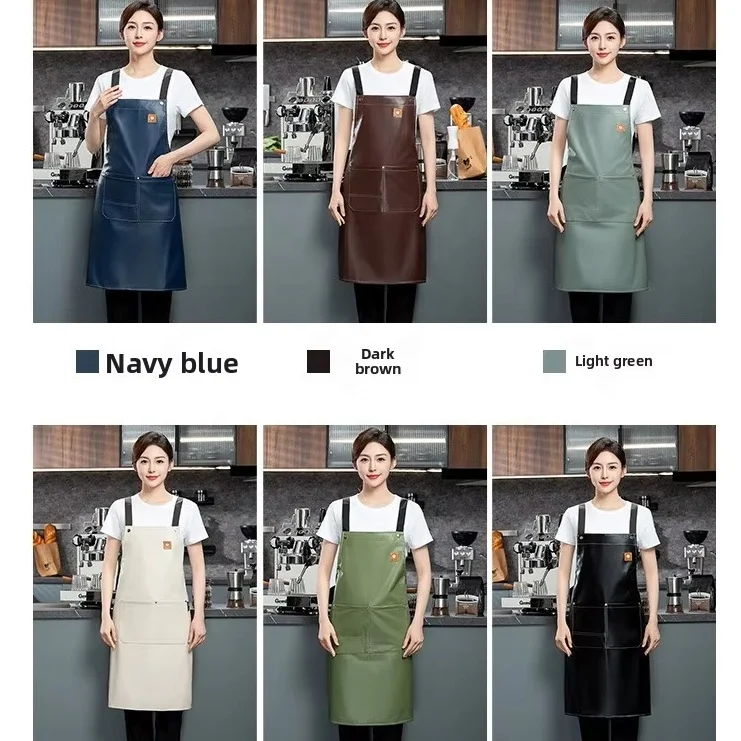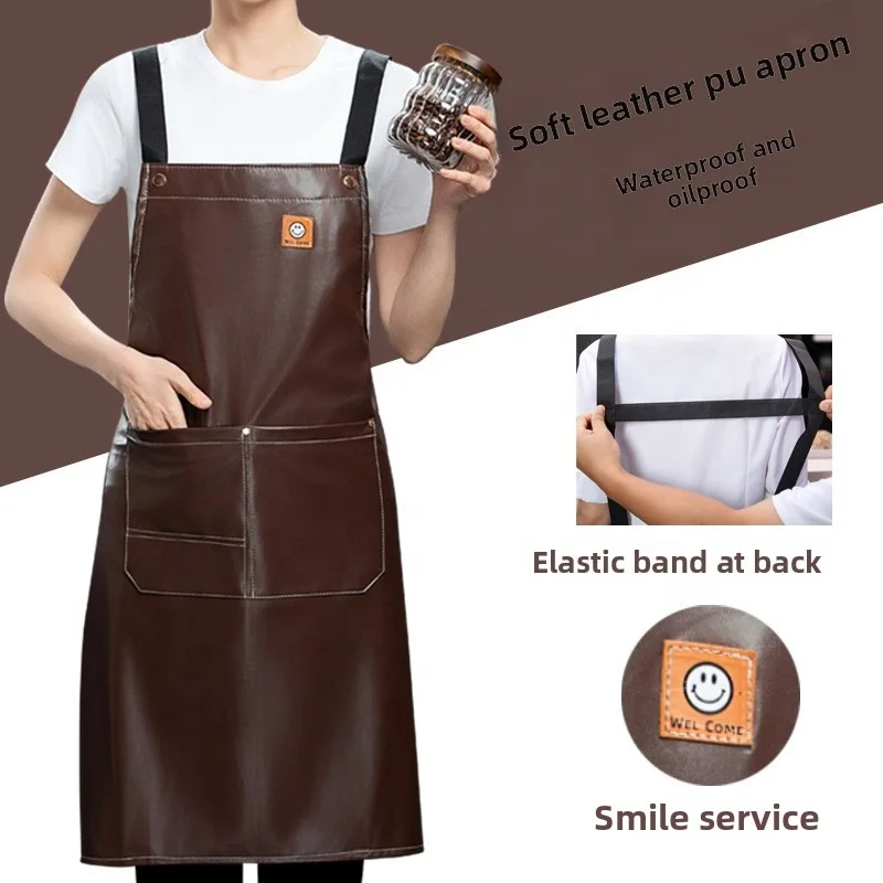Custom Printed Logo for Smiley Face PU Soft Leather Waistcoat Waterproof Oilproof Catering Kitchen Apron for Restaurant Workwear