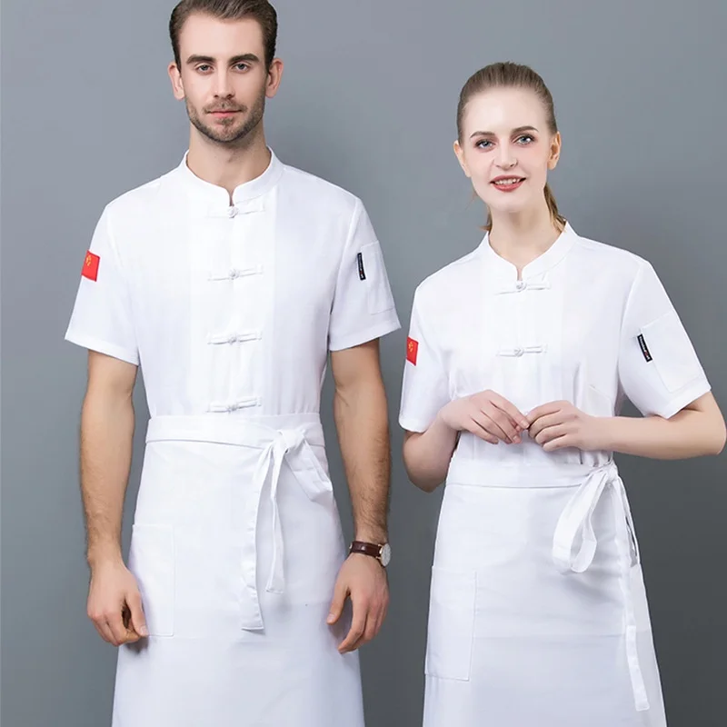Men's Linen Long Sleeve Chef Shirt Breathable Thin Style Canvas Uniform for Restaurant Kitchen Hotel Back Office Use