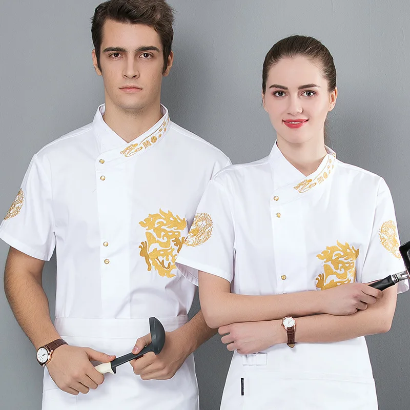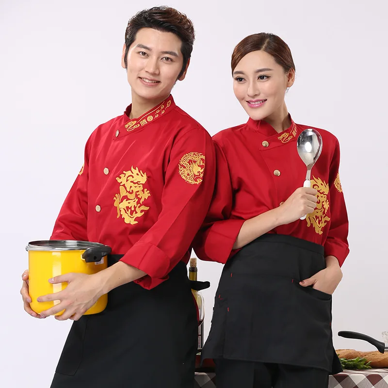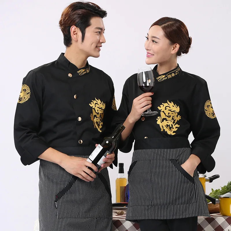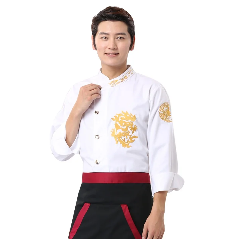 New Executive Kitchen Work Clothes Long-Sleeved Winter Chef Uniform Embroidered Dragon Woven Twill Fabric for Hotels Catering