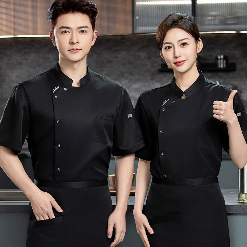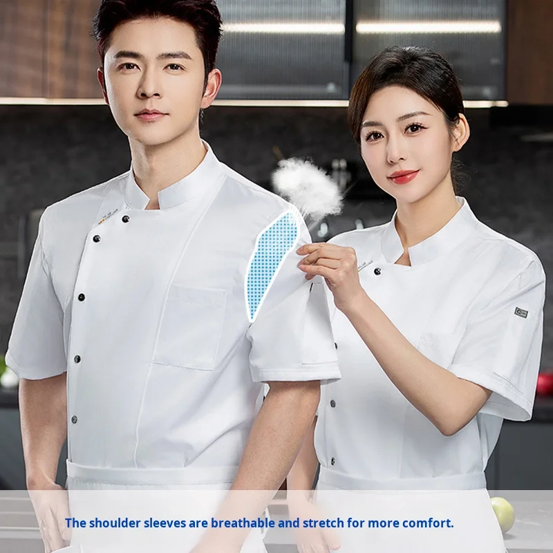 High-End Twill Fabric Short Sleeve Summer Workwear Breathable Chef Uniform for Chinese Western Restaurant Hotel Kitchen Canteen