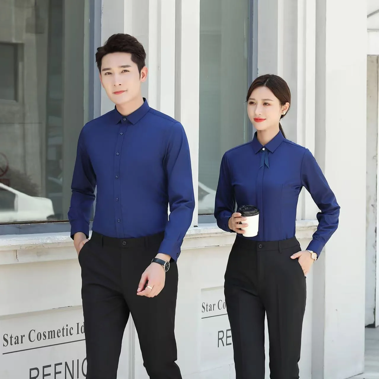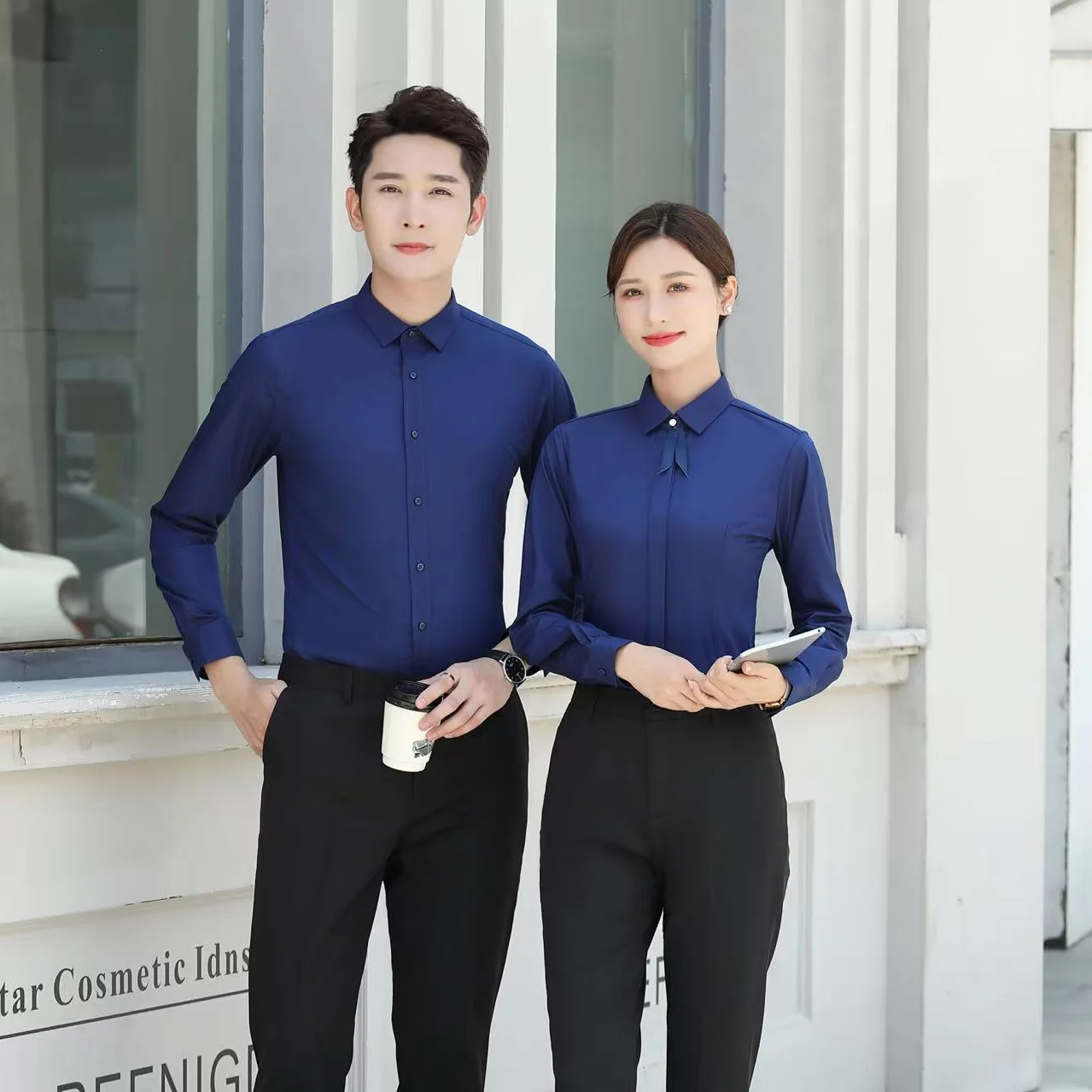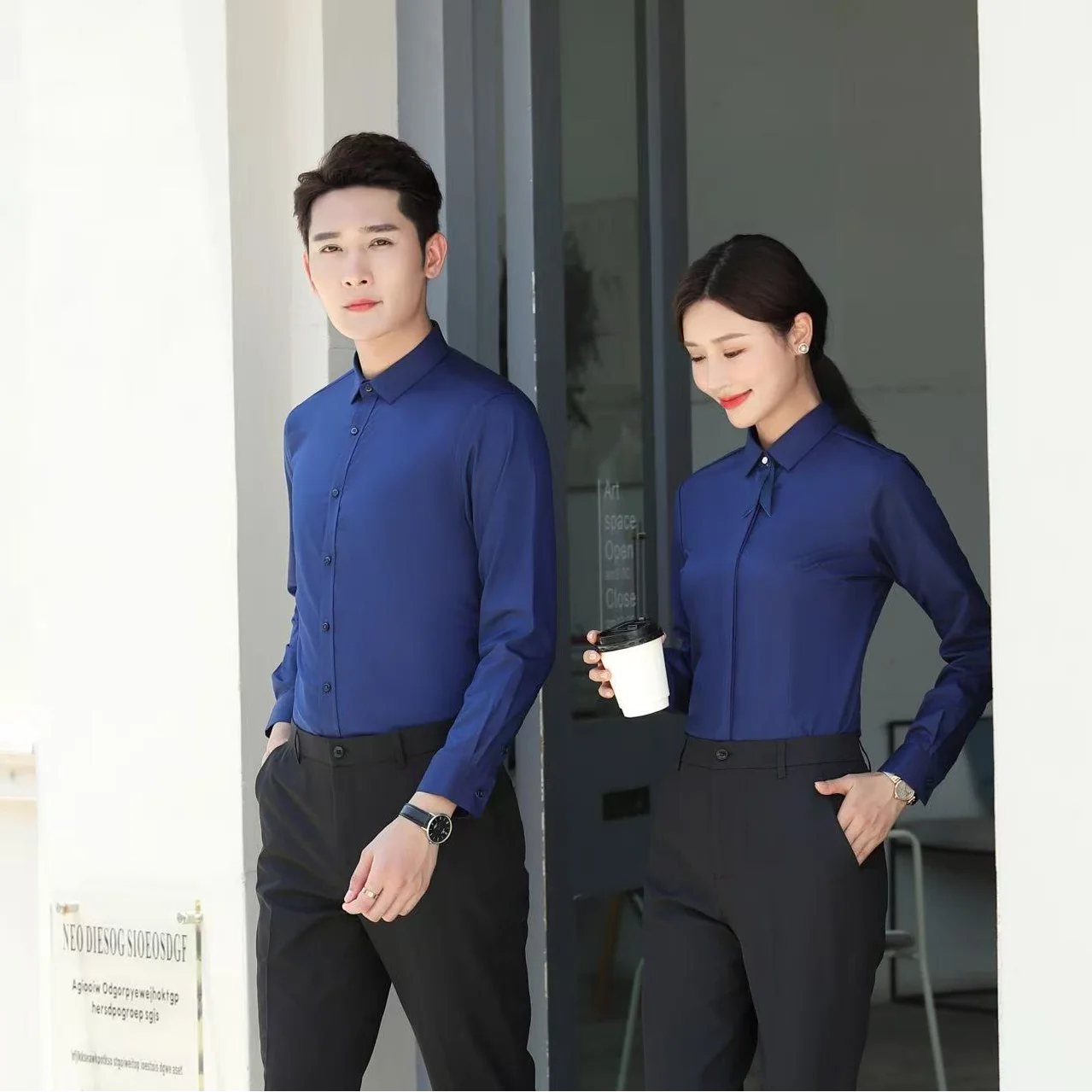 Professional Men's Navy Blue Long Sleeve Business Style Dress Shirt Breathable and Anti-Wrinkle Work Shirts