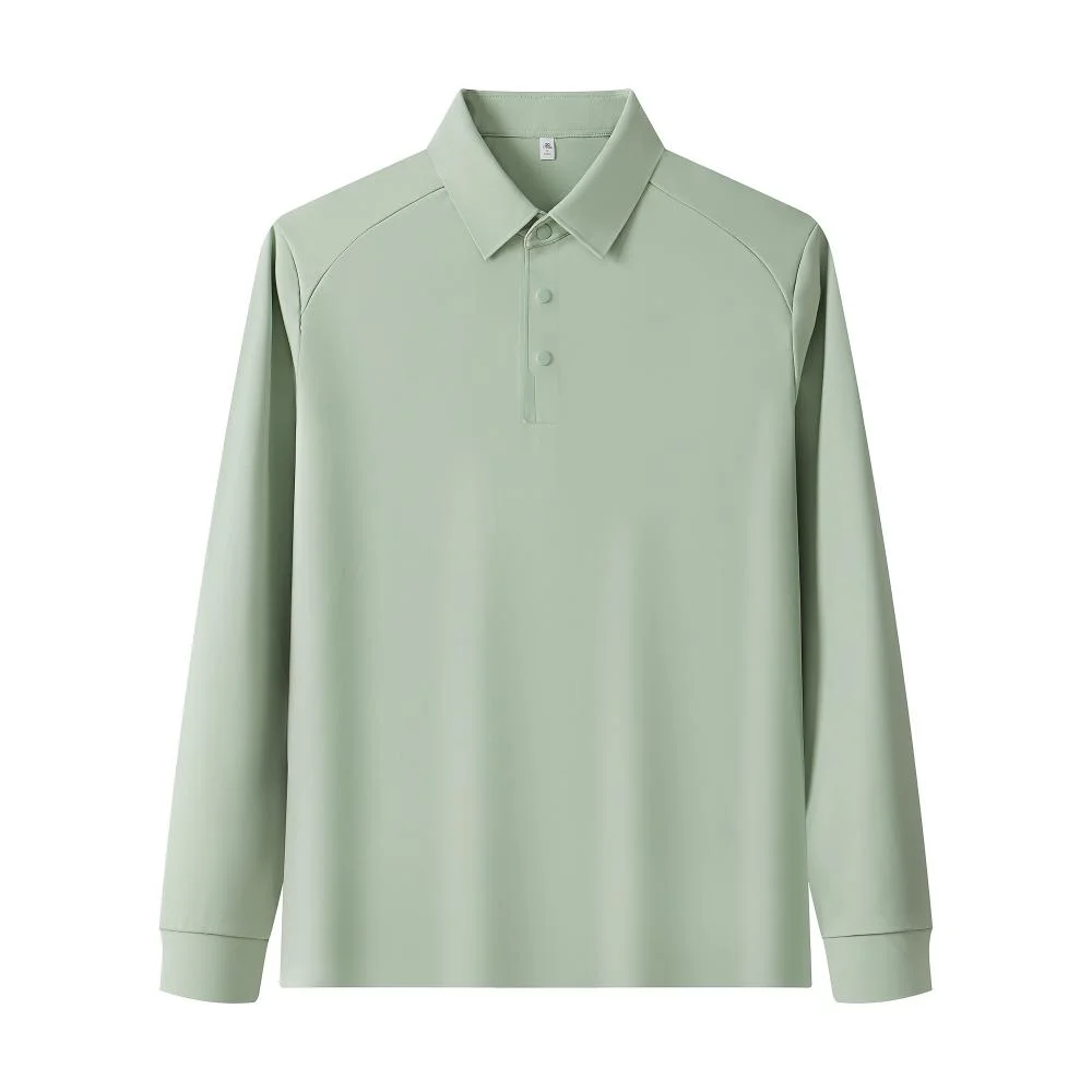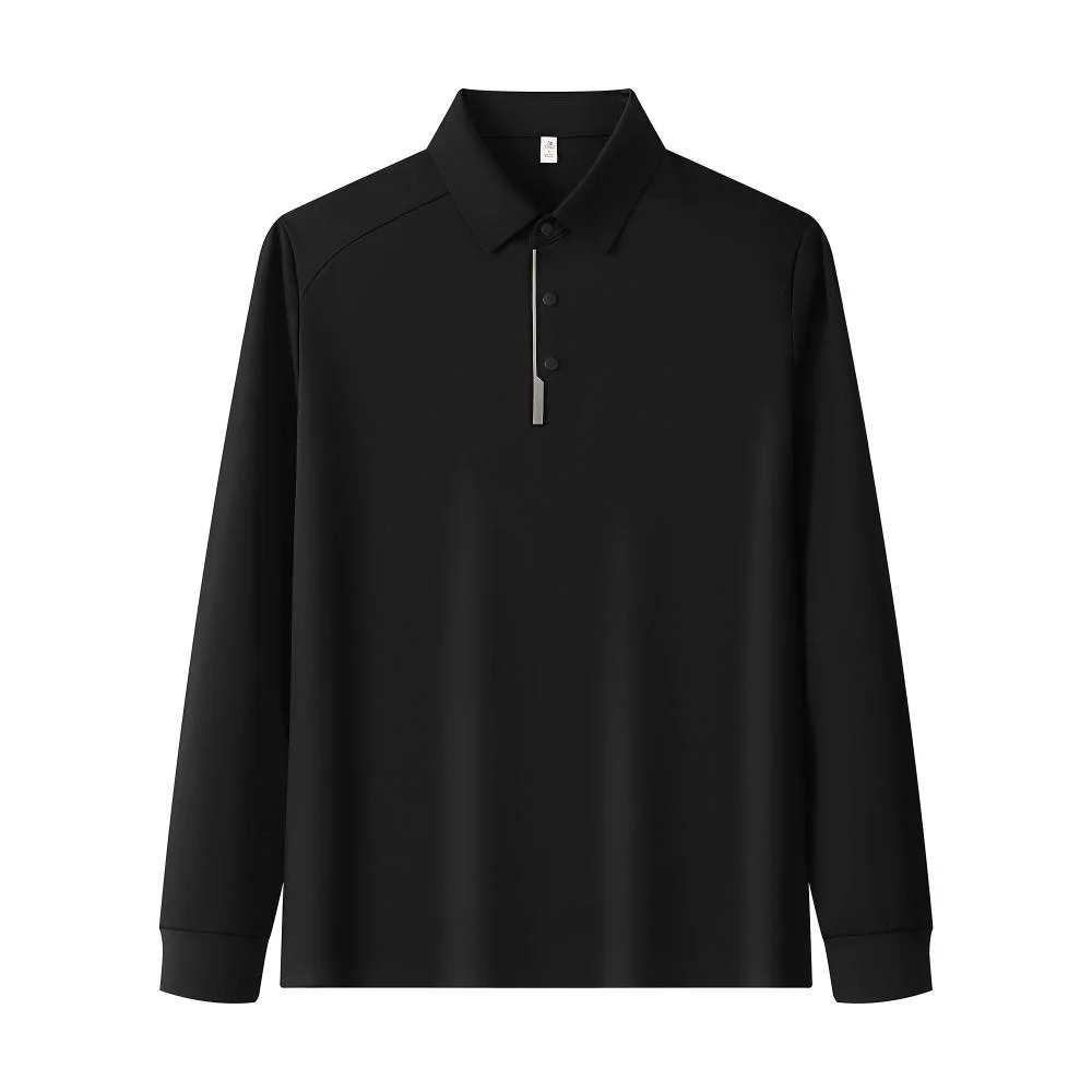 New Men's Solid Knitted Long-Sleeved for Shirt Business Casual Golf Sport Comfortable Breathable T-Shirt
