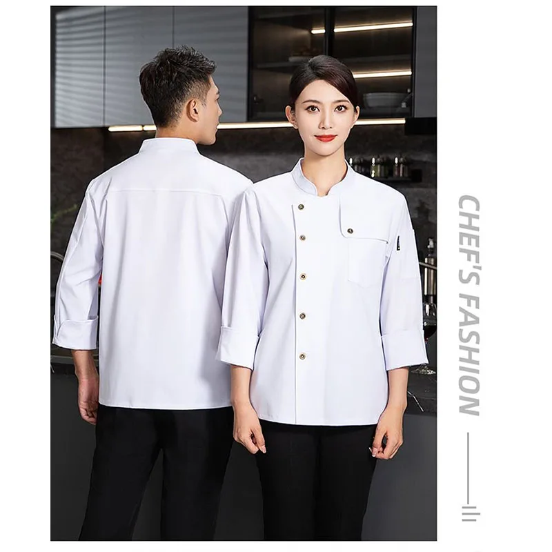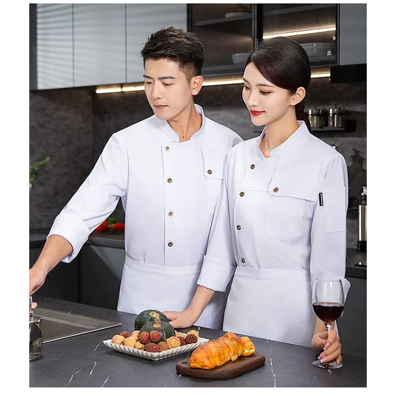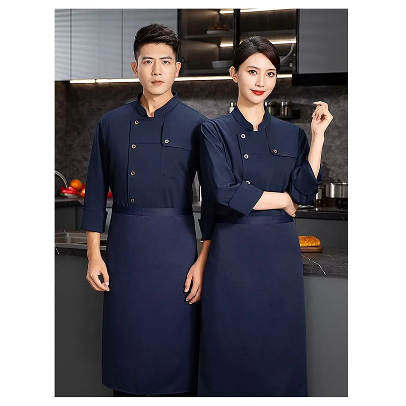 Unisex Long Sleeve Professional Chef's Overalls Woven Restaurant Uniforms Fashionable Restaurant Clothing