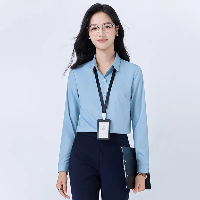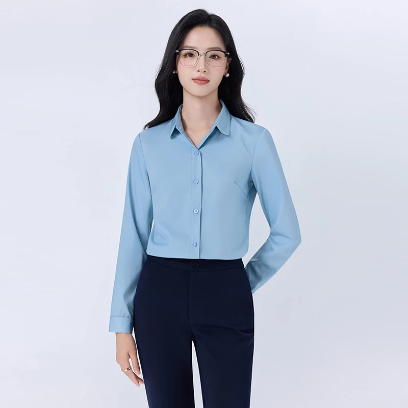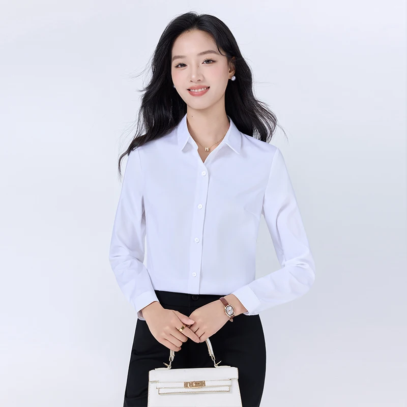 Professional Women's White Long-sleeved Crew Neck with Button-down Detailing, Suitable for Commuting and Formal Work Wear