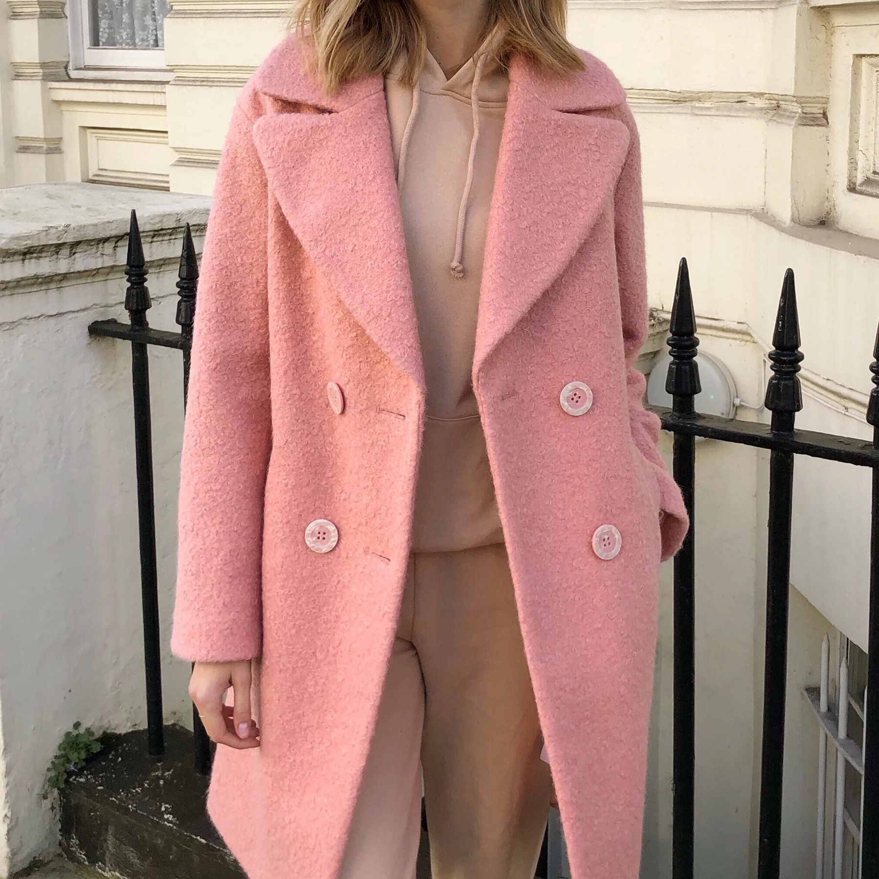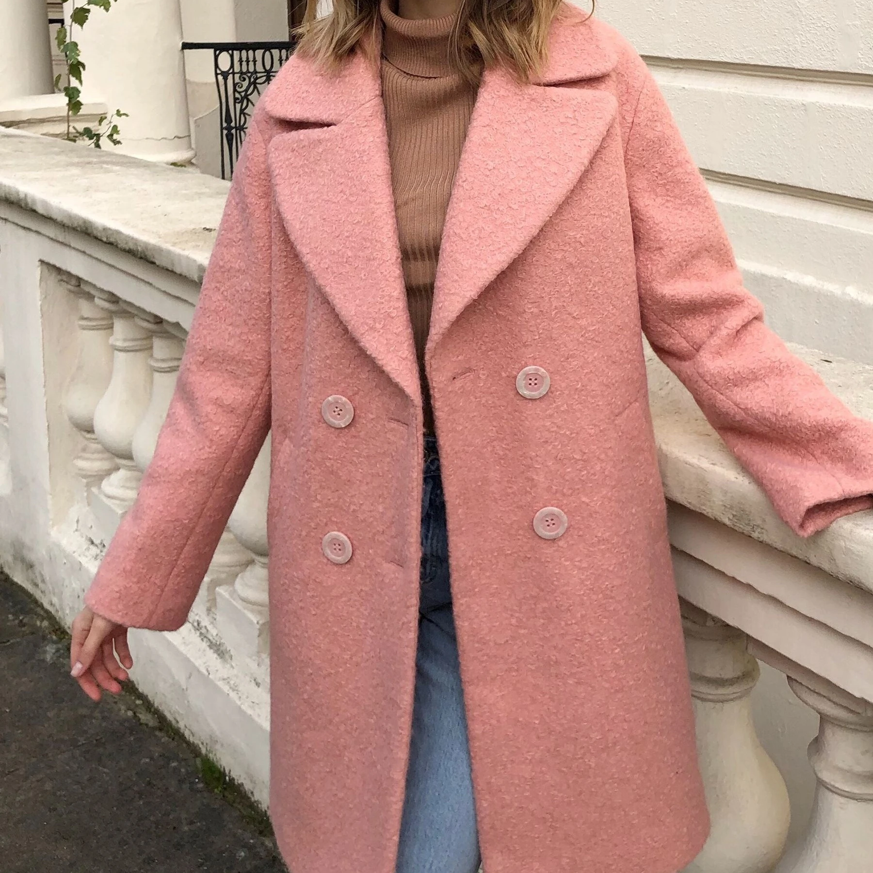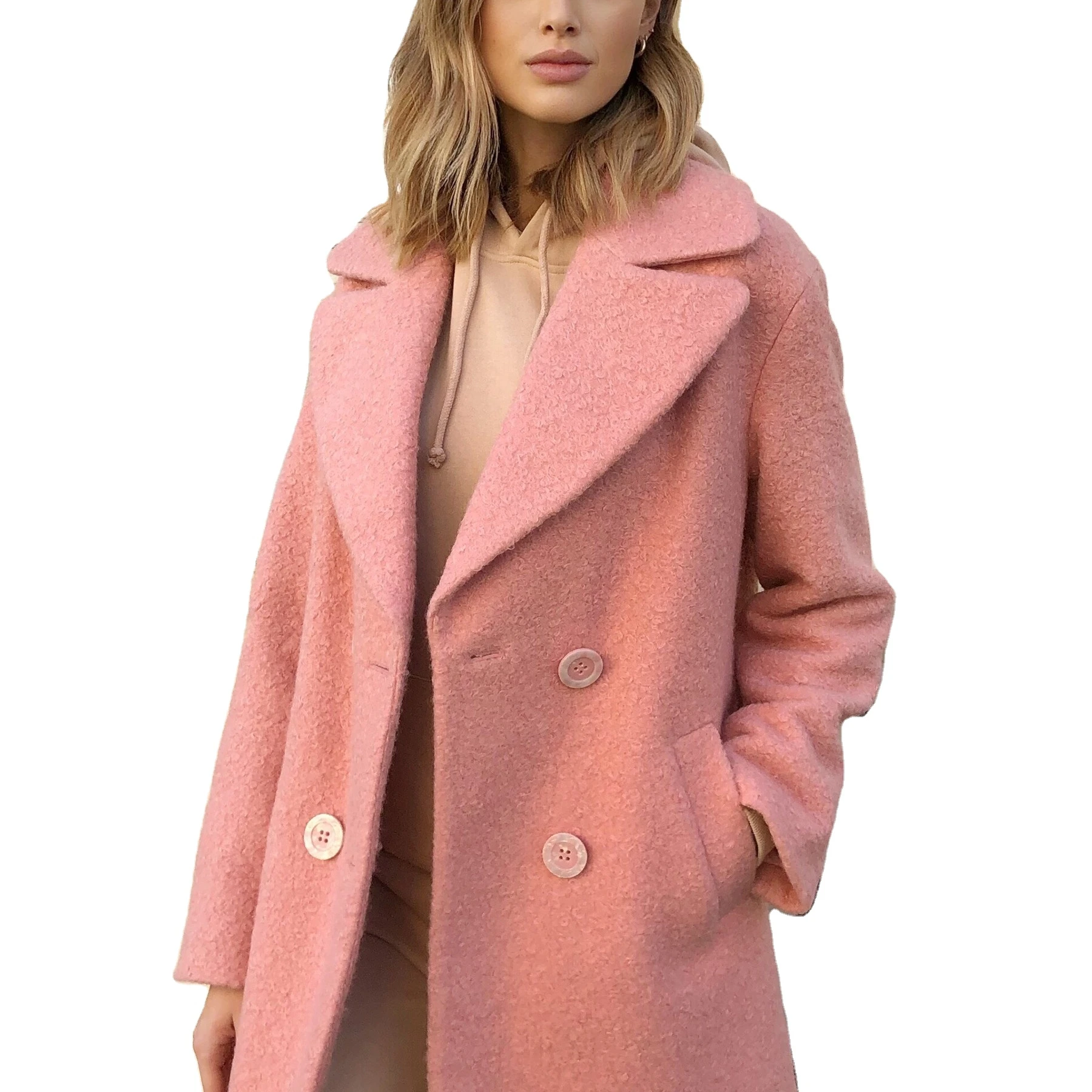 2020 New Arrival Ladies Fashion Long Sleeve Stand Collar Patch Fly Knee Button Jacket Formal Casual Outerwear Silk Feather Woven