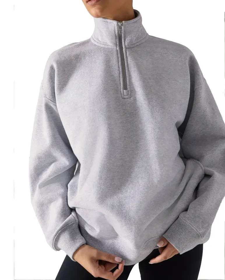 Cotton Hot Sale Fleece Half Zip Pullover 1/4 Zip Sweatshirt Blank Oversized Long Sleeve Sweatshirt Women Hoodie