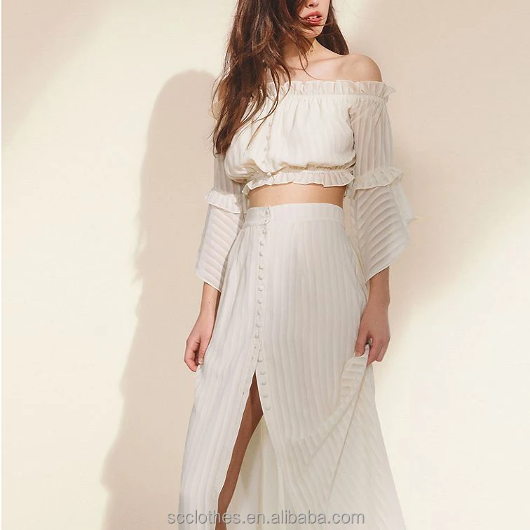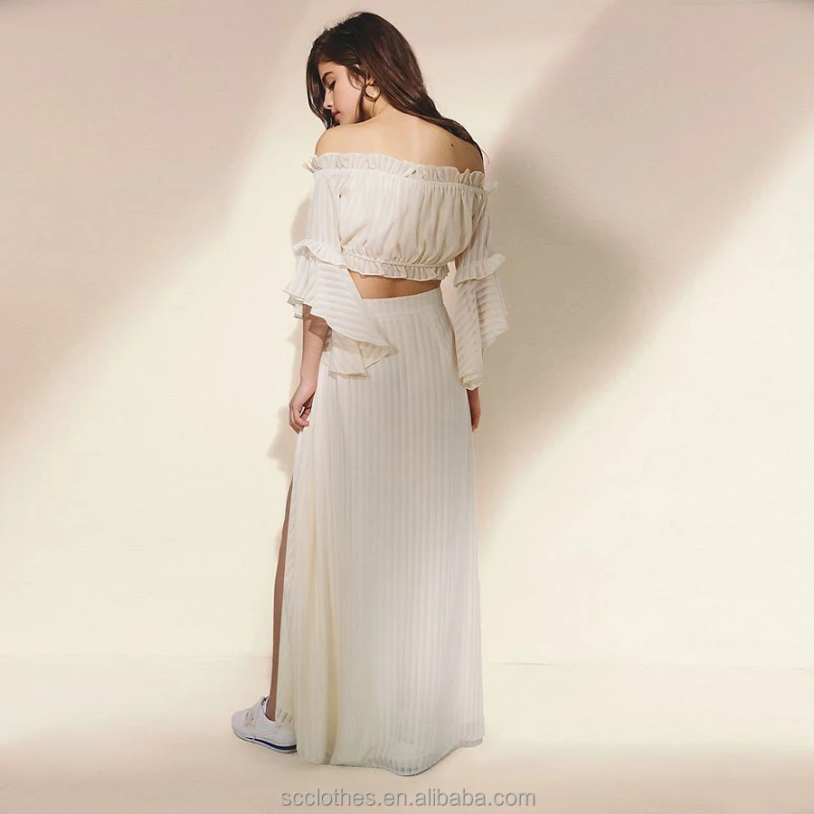 One Shoulder Top and Split Maxi Skirt Set Women Long Sleeve Crop Top Long Skirt 2 Piece Set for Female Sets Women's Suits
