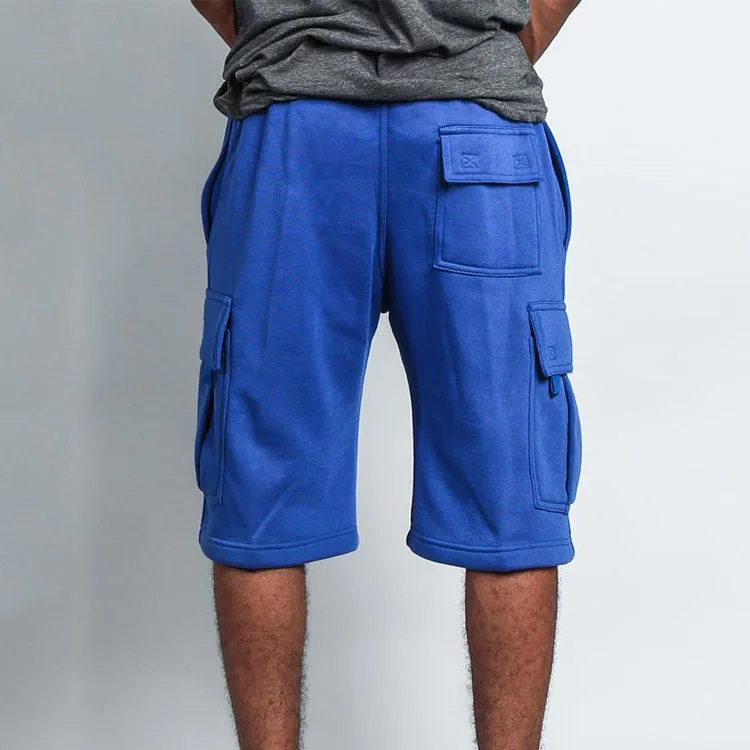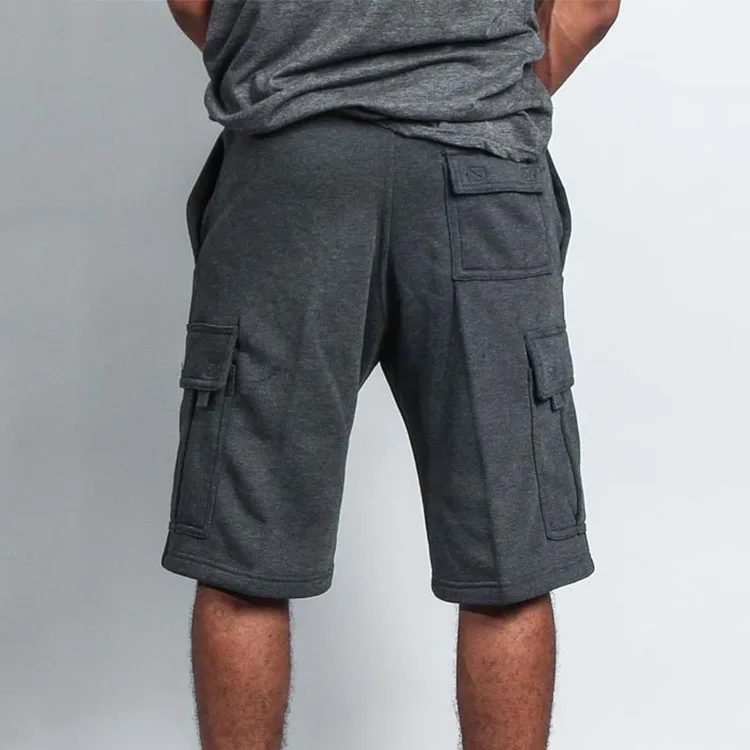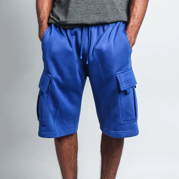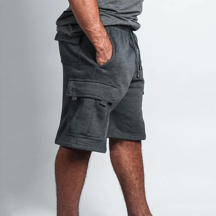 Customized Logo Men's Solid Drawstring Fleece Heavyweight Pocket Cargo Shorts