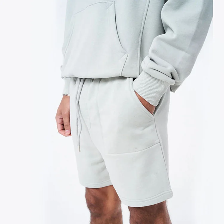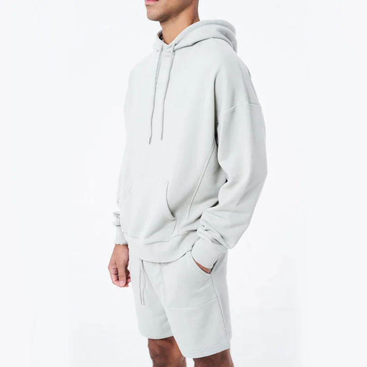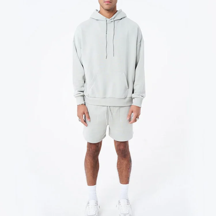 Custom Logo Men Front Pocket Hoodies Drawstring Shorts 2 Piece Sets