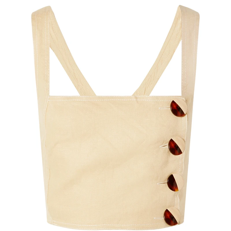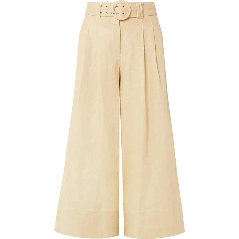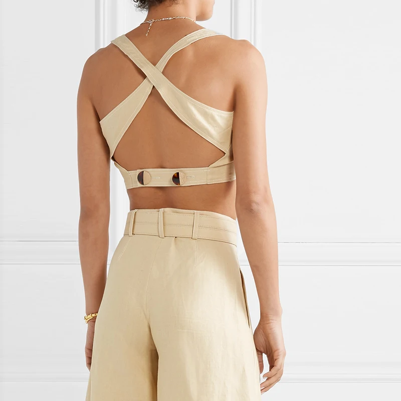 New Fashion Open-Back Cropped Linen Crop Top With Wide Leg Pants Two Piece Set