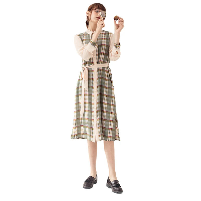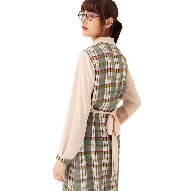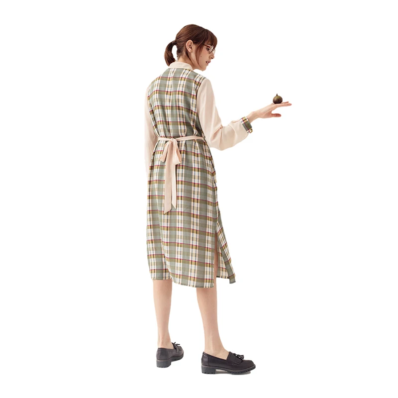 Green Plaid Vestidos Spring Vintage Style Shirt Dress Women Casual Dresses