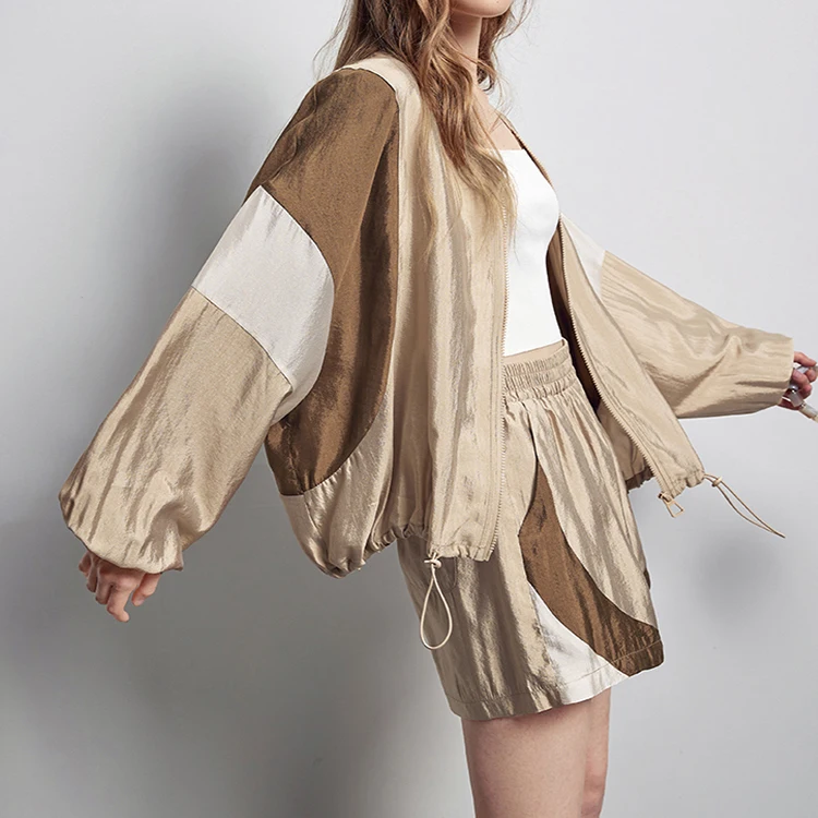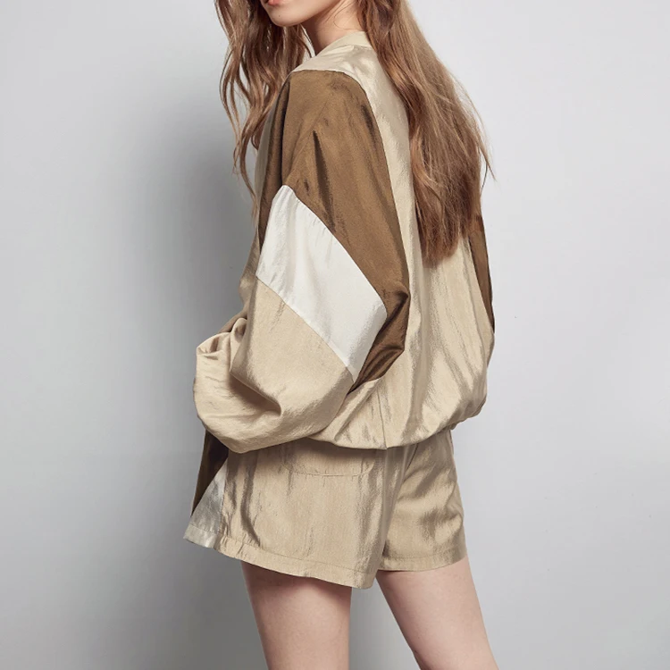 New Women's Oversize Contrast Color Stitching Shorts Set