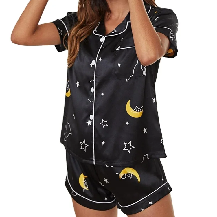 Women's Silk 2 Piece Sets Sleepwear Short Sleeve Comfortable Pajamas Set