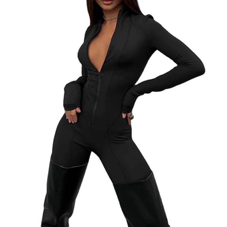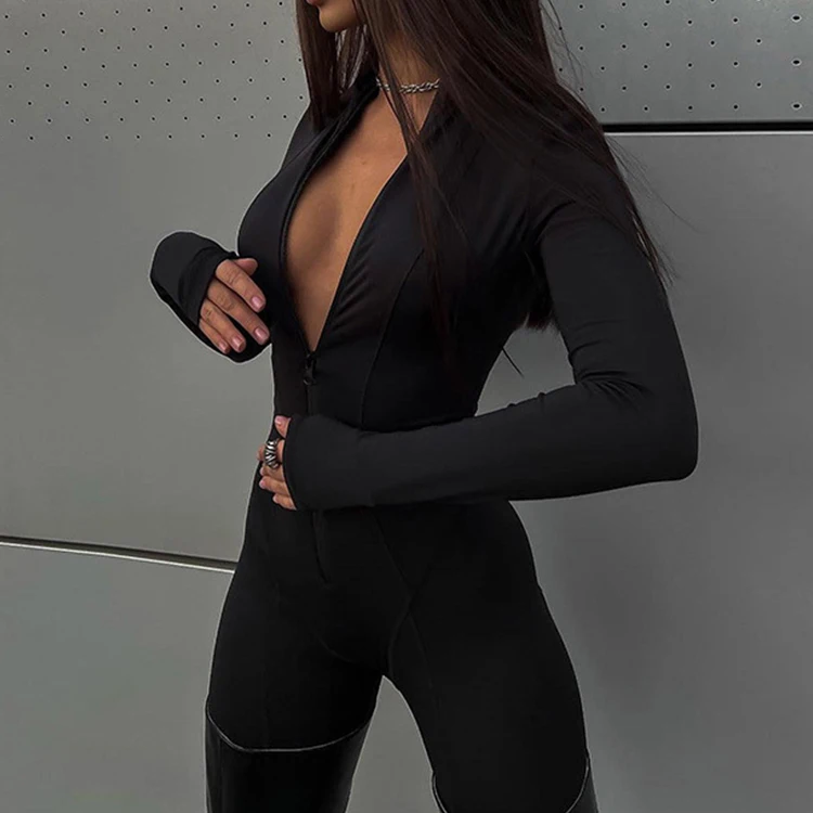 Custom Logo Women's Zipper Long Sleeve Sports Slim Jumpsuit