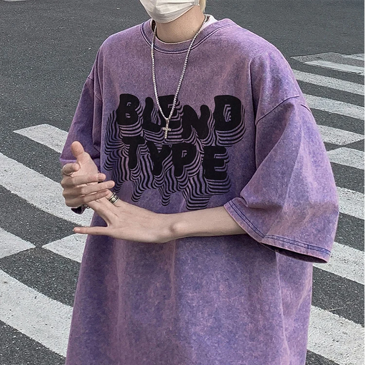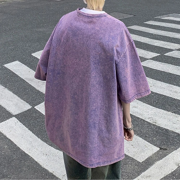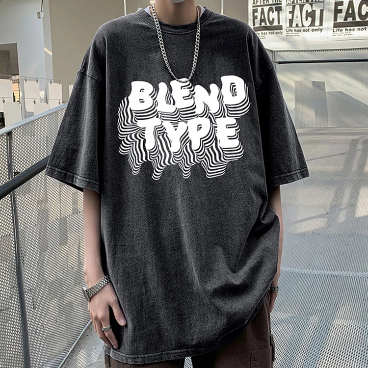 Vintage Men Loose Fit Washed Distressed Printing T-shirt