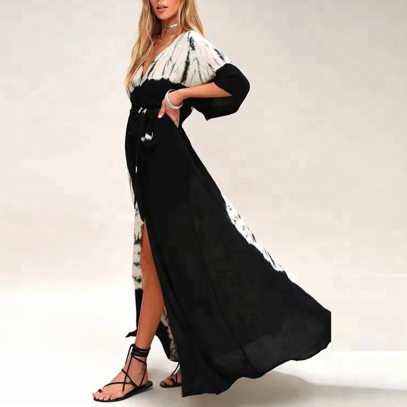 ZYHT 73906 Long Sleeve Deep V Neck High Slit Sexy Elegant Knot Long Floor Length 3D Flower Dark Green Purple Women Evening Dress