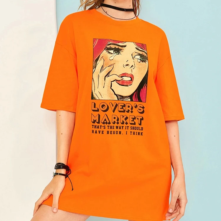 Custom Women Round Neck Half Sleeve Cotton Pop Graphic Print T-shirt