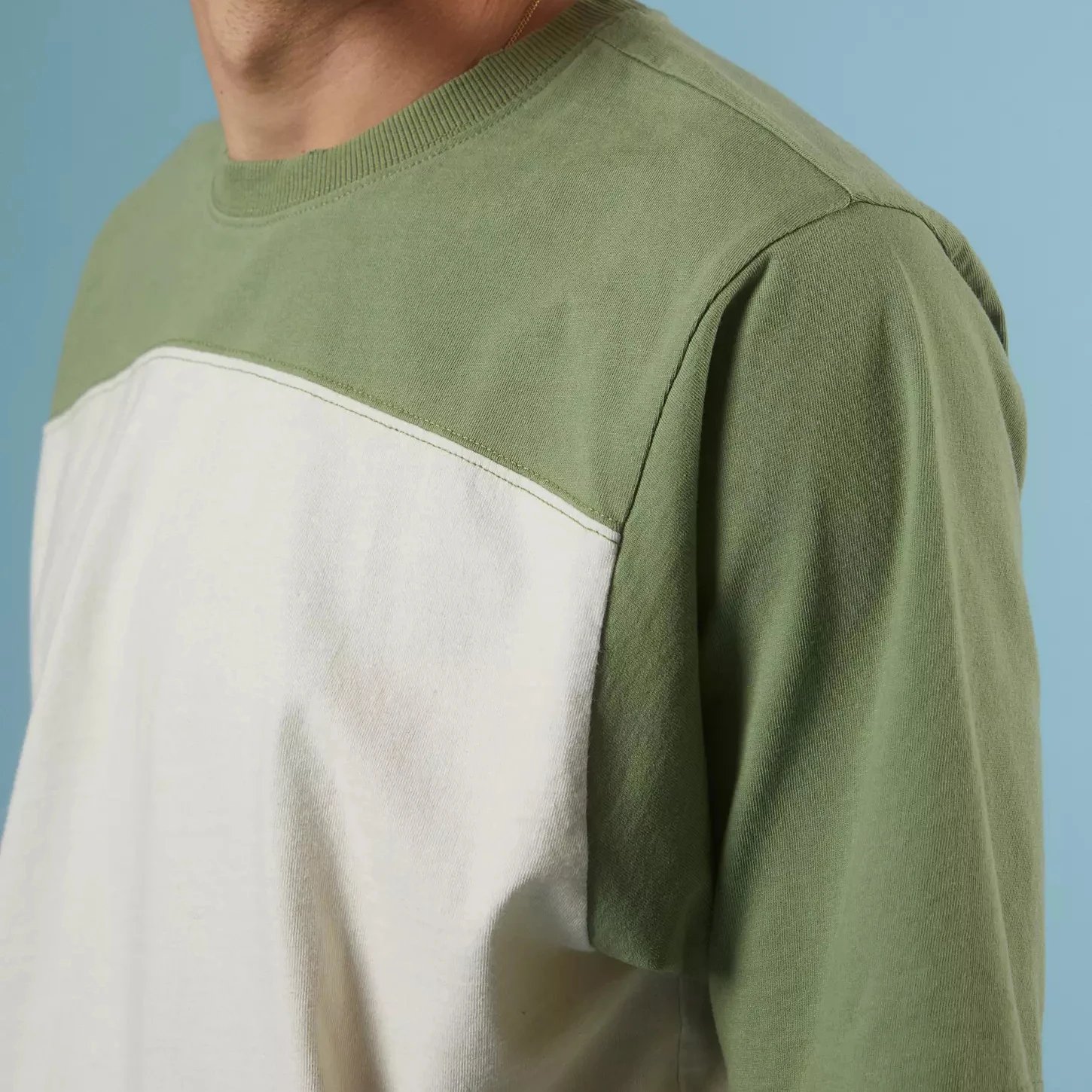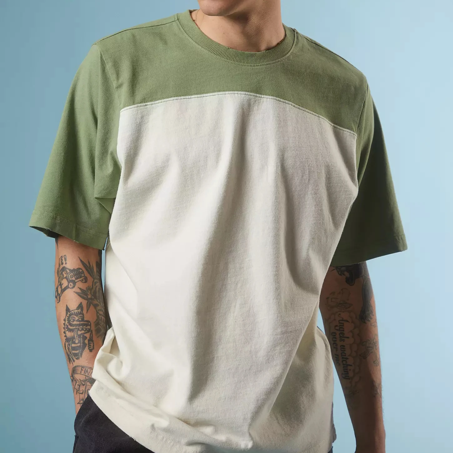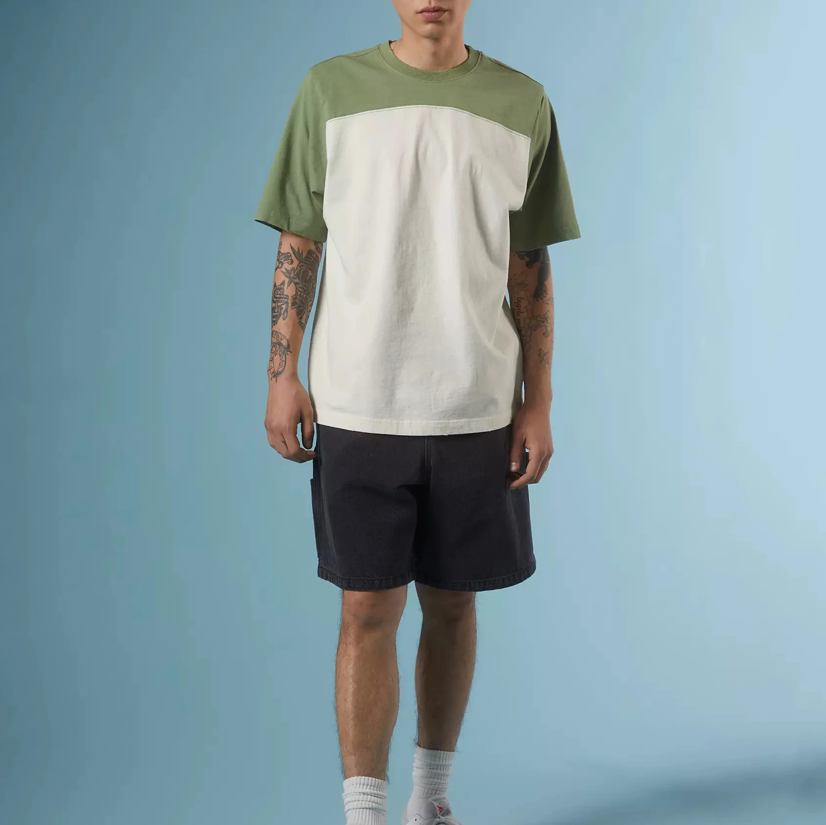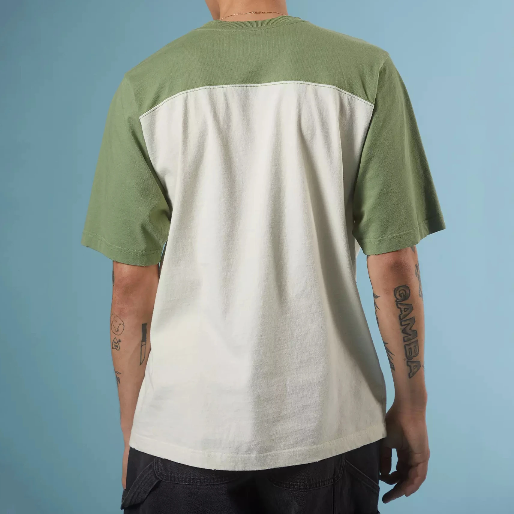 Bulk Crafted Cotton Cut Slightly Relaxed Fit Short Sleeves Crew Neck Two-tone Blocked T-shirt