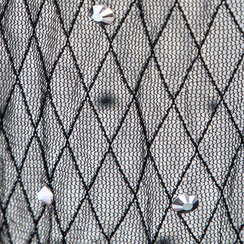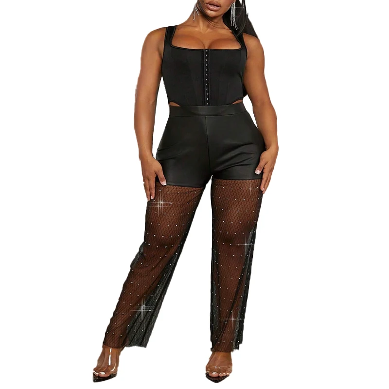Wholesale Women Rhinestone Detail Contrast Mesh Flare Leg Pants Sheer Mesh Elastic Waist Dance Bell Bottom Trousers