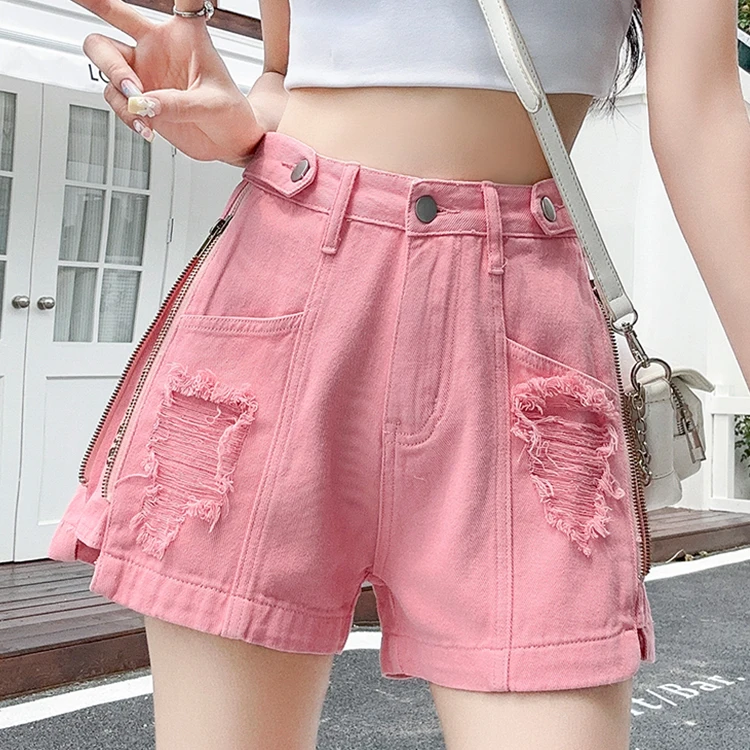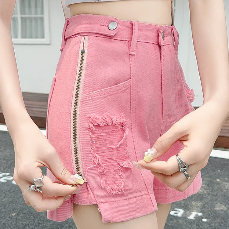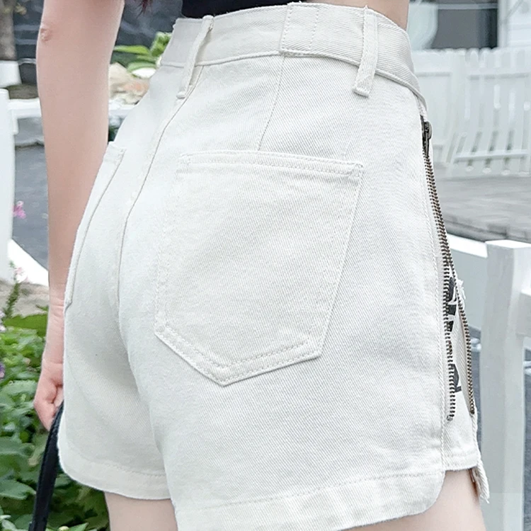 Vintage Women's High Waist Side Zipper Washed Ripped Denim Shorts