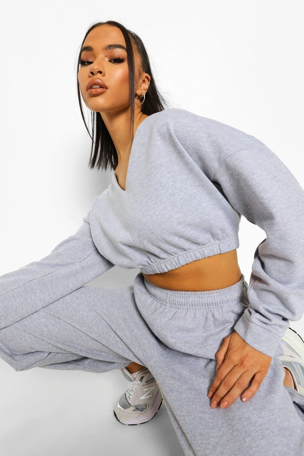 Fashion Hot Sale Women's Solid Color V-neck Long-sleeved Short Sweater