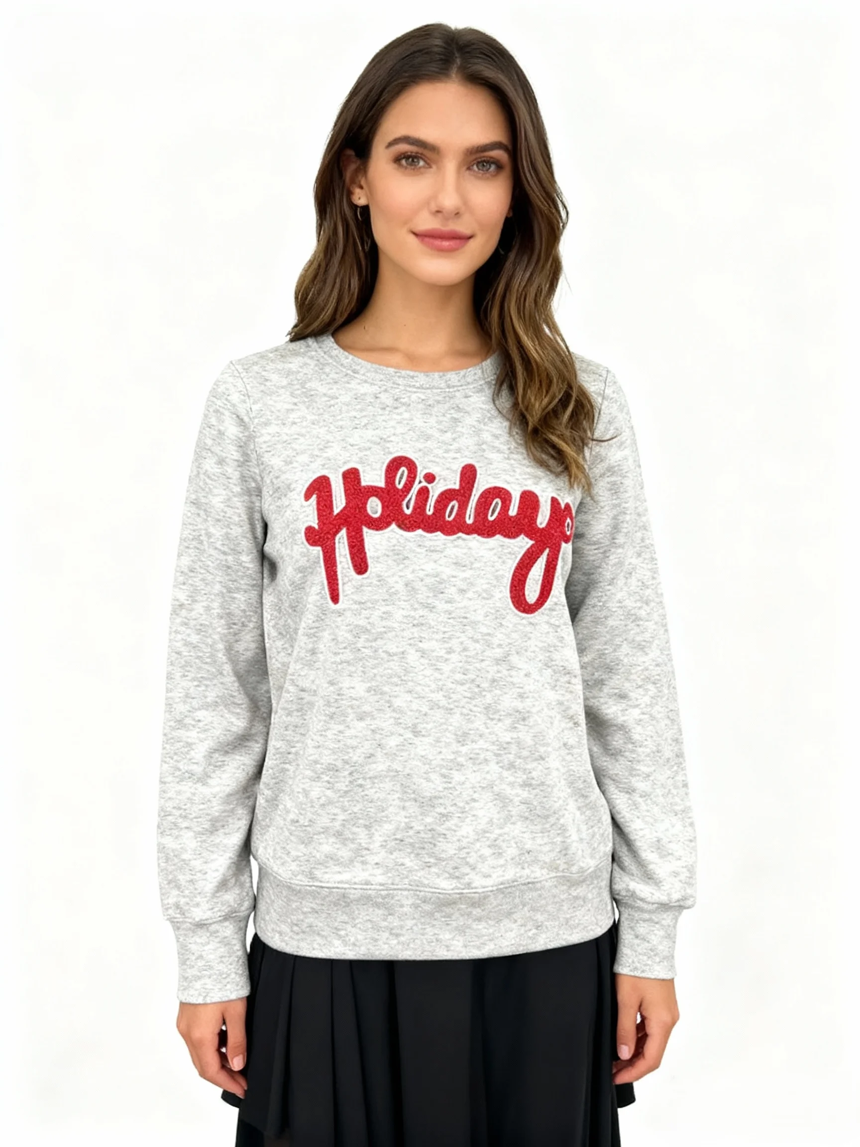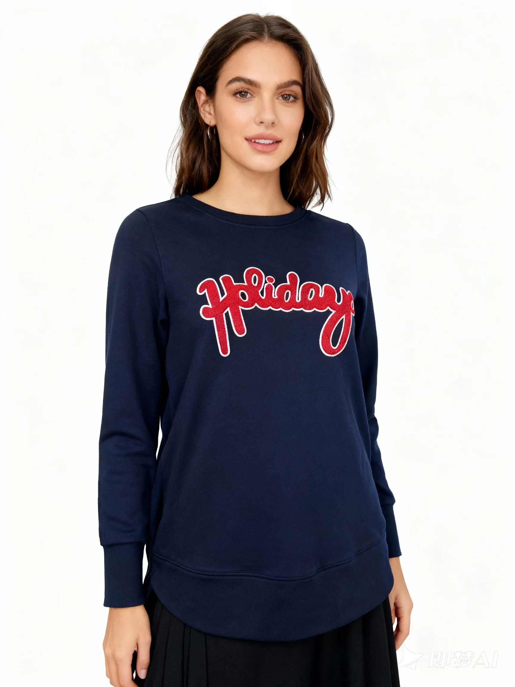 Casual Women's Sweatshirt FRENCH TERRY Cotton/Spandex Breathable Anti-Wrinkle Anti-Pilling 3D Embossed Fashion Letter Front