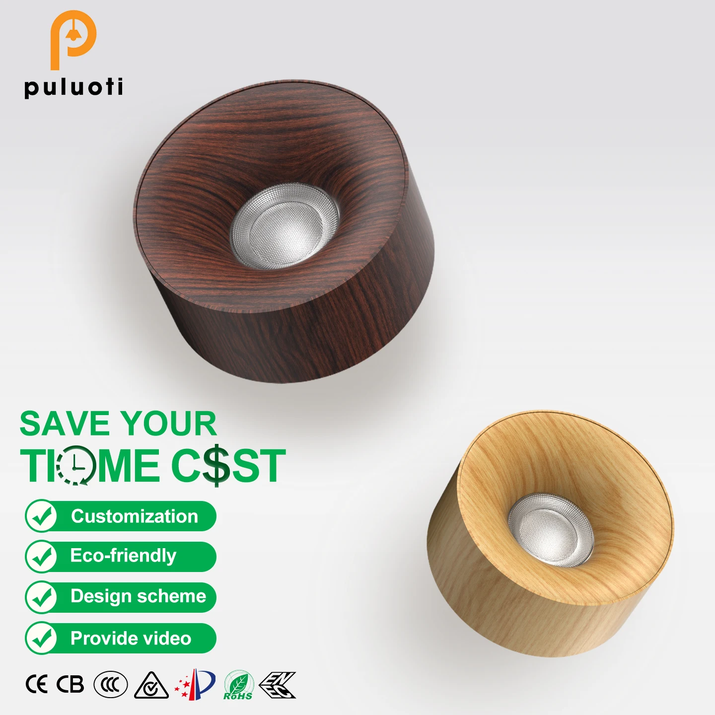 Modern Vintage Style 120mm H55mm Walnut Log Color Downlight 3000K 3500K 4000K Hotel Surface Mount LED COB Ceiling Spot Light