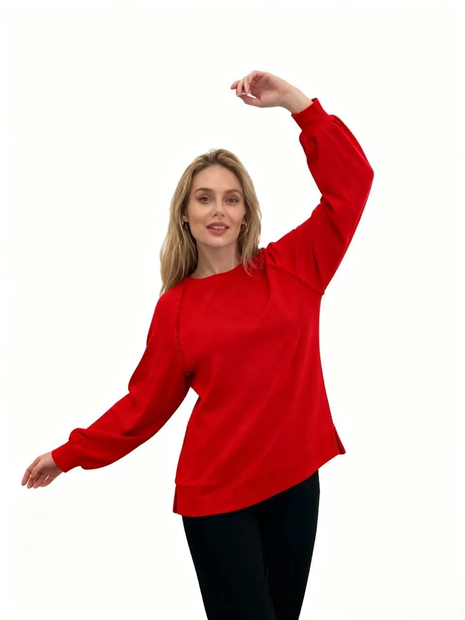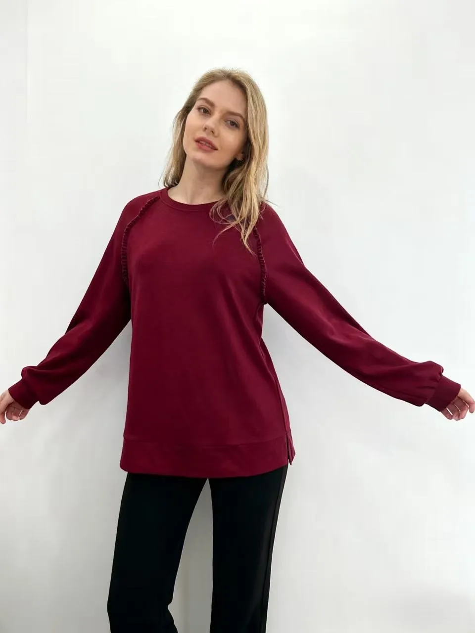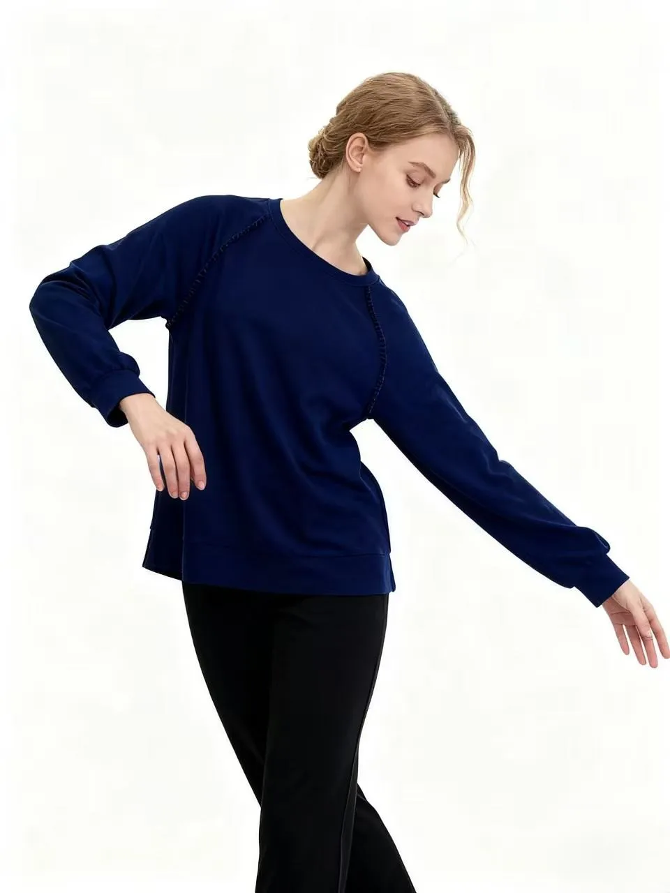 Women's Casual Letter Printed Ruffle Raglan Sleeve Breathable French Terry Cotton/Spandex Neck Sweatshirts Pullovers Regular Fit