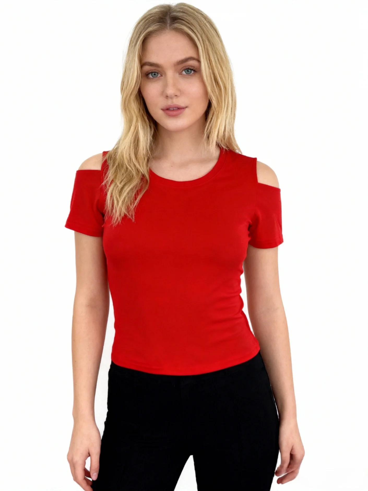 Hot Sale Stretch High Quality Fashion Tops Open Shoulder Casual Slim Fit Versatile Cropped Shirts