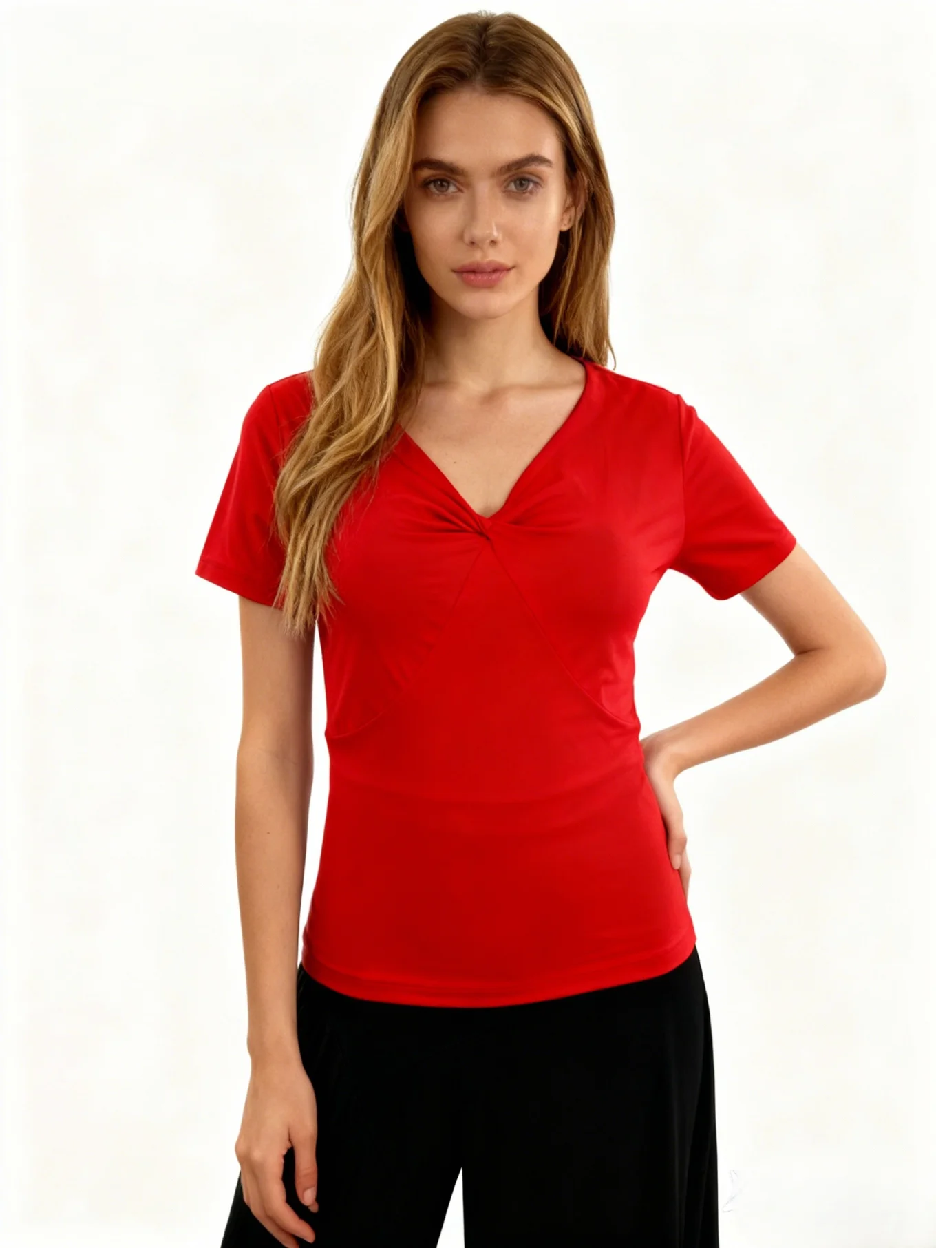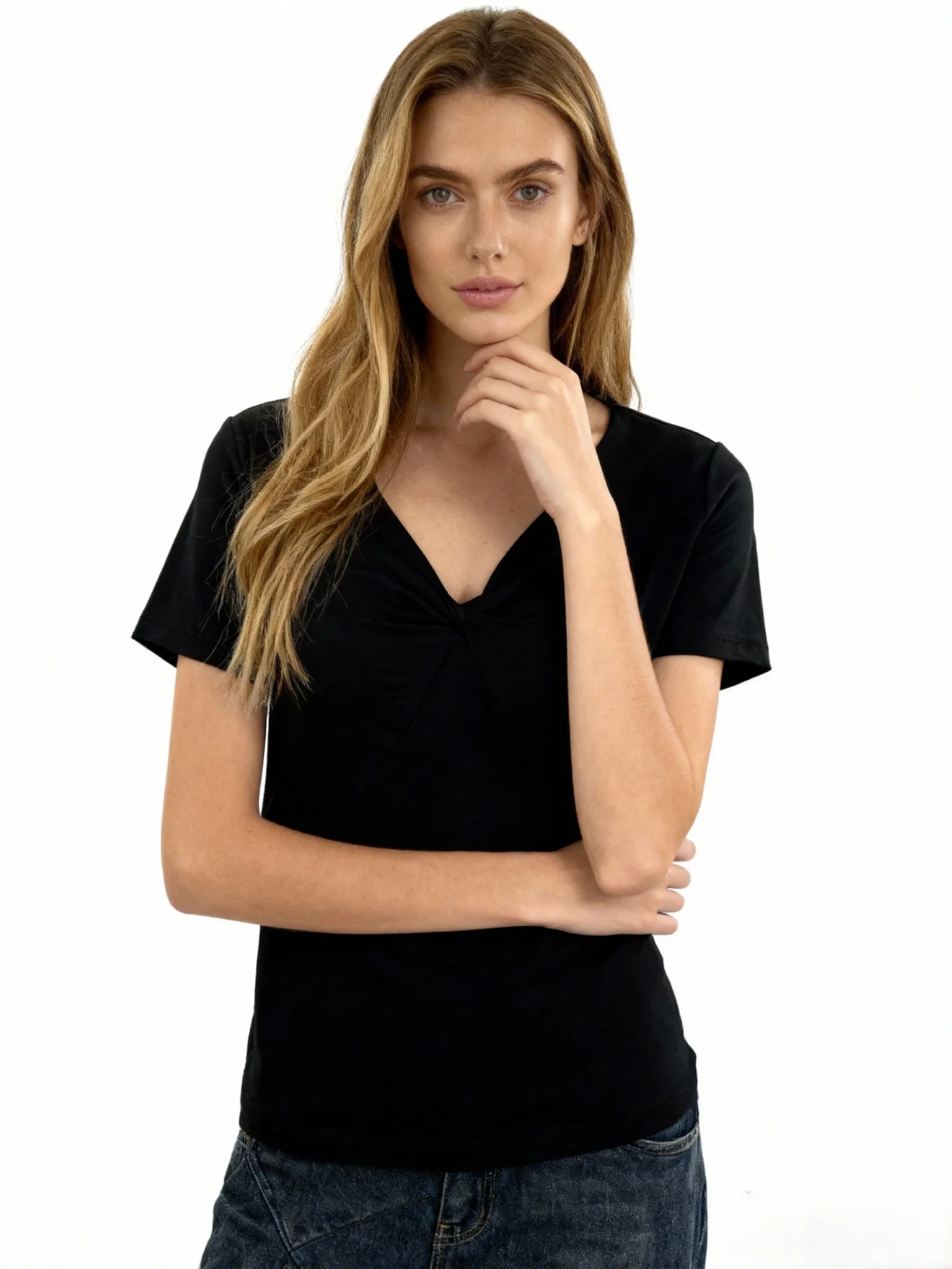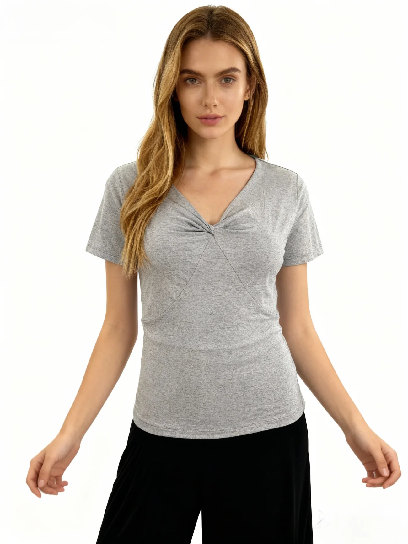 Women Summer Knitted Soft Stretch High Quality Cross-Twisted Knot Fashion Tops Elbow Short Elegant Shirt